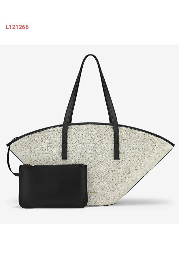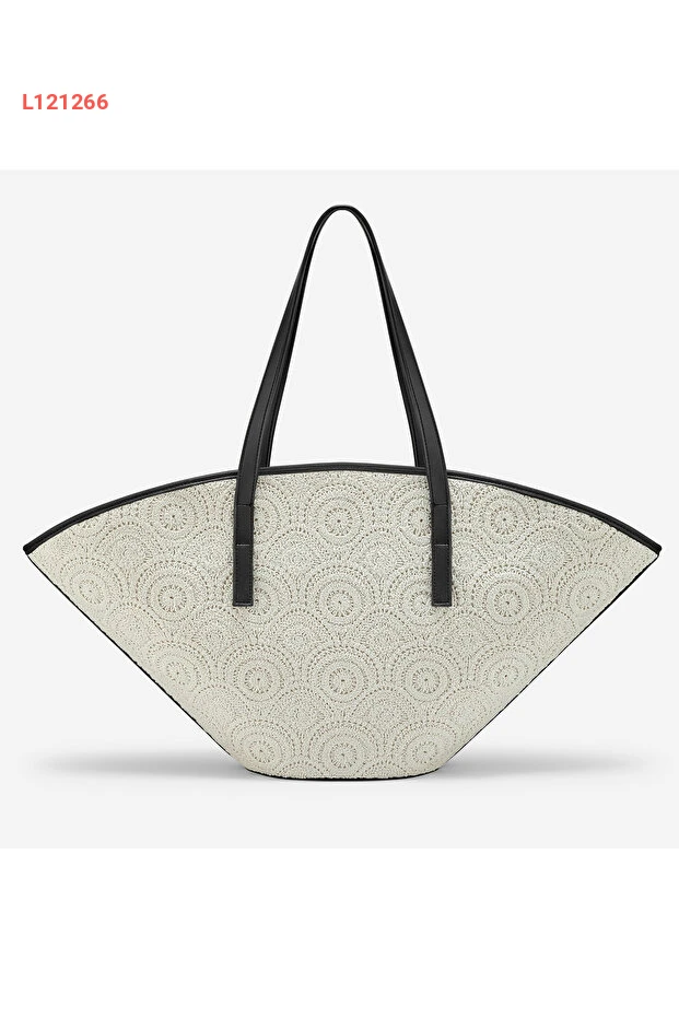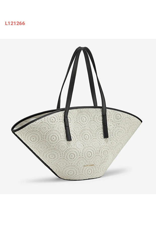 Black Ribbon Kadın Çanta Dantel Dokulu Büyük Kadın Plaj Çantası - Krem Omuz Çantası