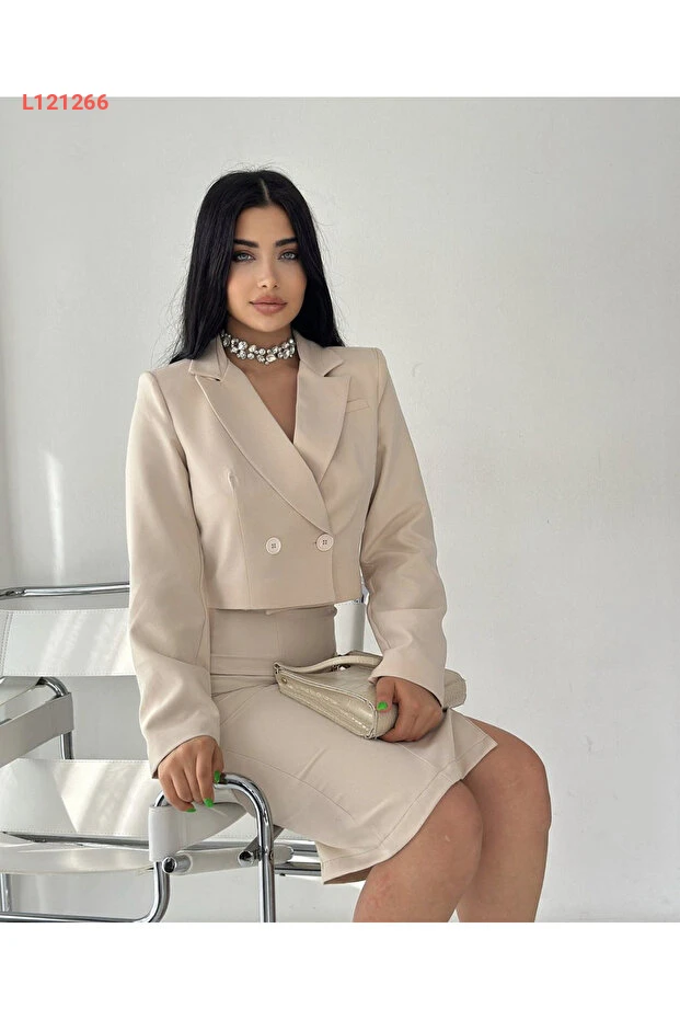 استمتع بإطلالة أنيقة وعصرية مع مجموعة السترة القصيرة والتنانير من "Pembekurdelem". يتميز التصميم الأنيق بلون الحجر الفاتح، مما يضفي لمسة من الأناقة على أي مناسبة. هذه المجموعة مثالية لتبرز أنوثتك وتمنحك راحة في الحركة وثقة في الأسلوب.
