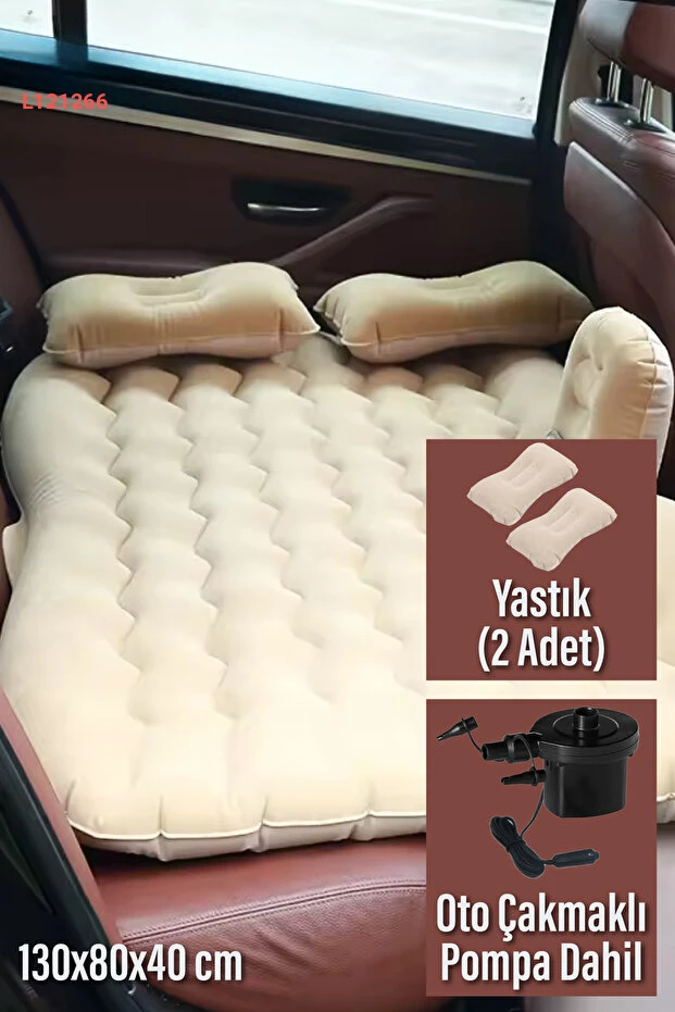 إطار سرير هوائي قابلة للنفخ للسيارات - 130x80x40 سم - لون كريمي