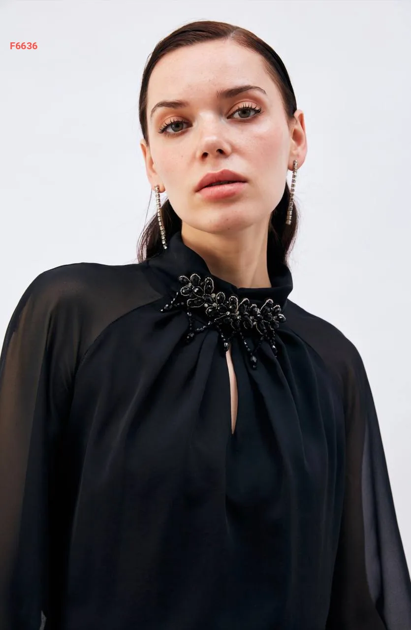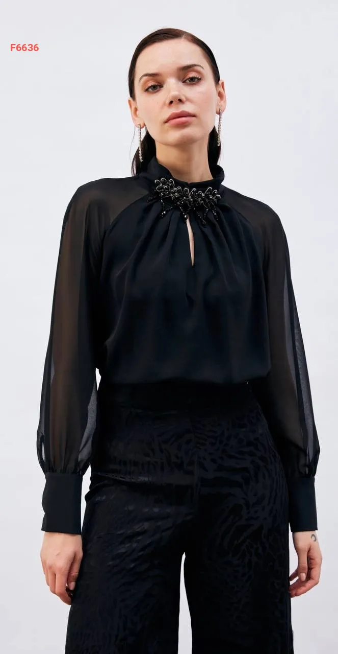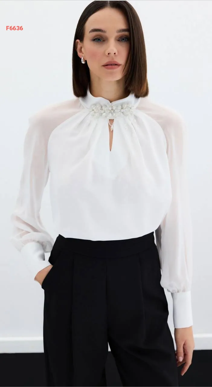 بلوزة شيفون باكسسوار عالياقة