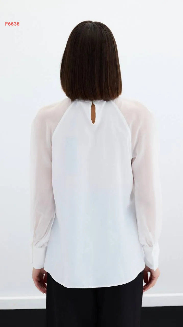 بلوزة كم طويل شفافة