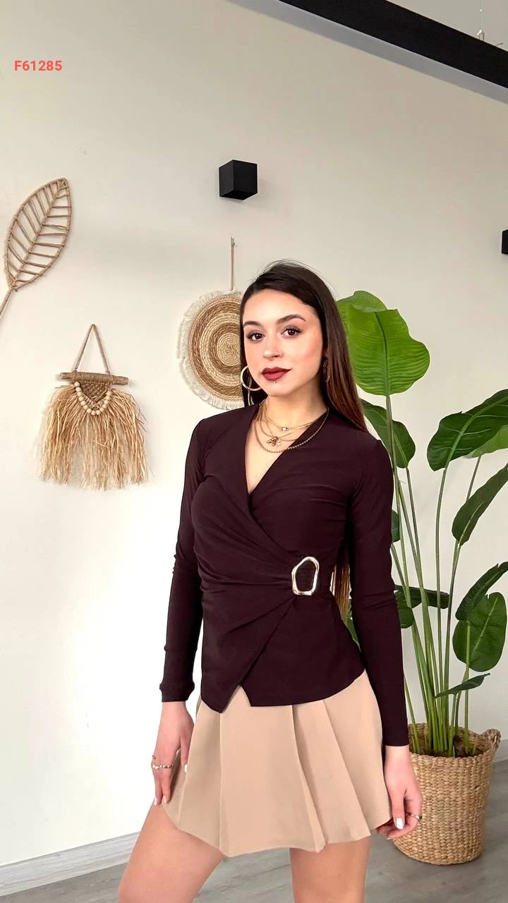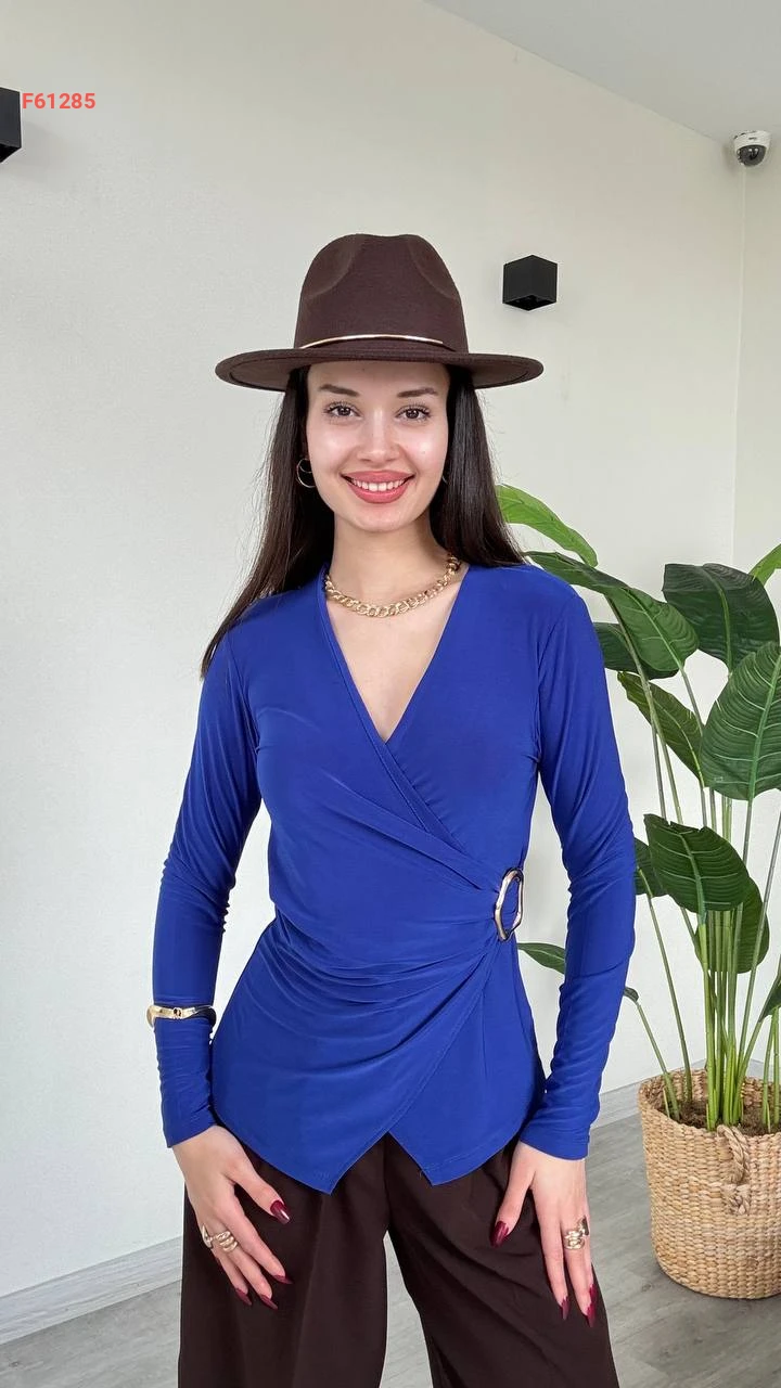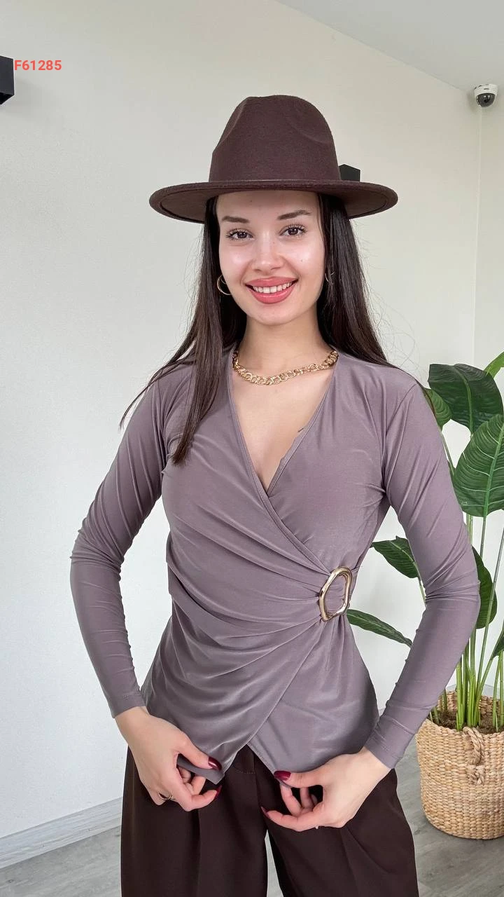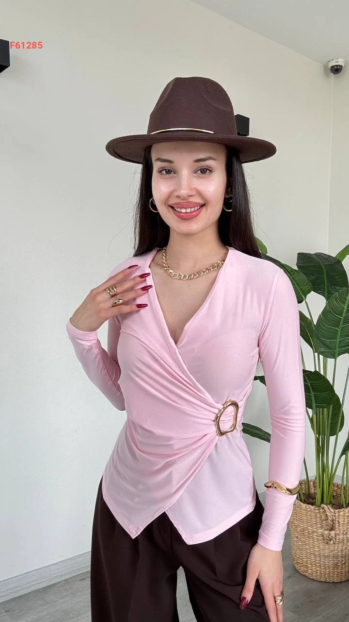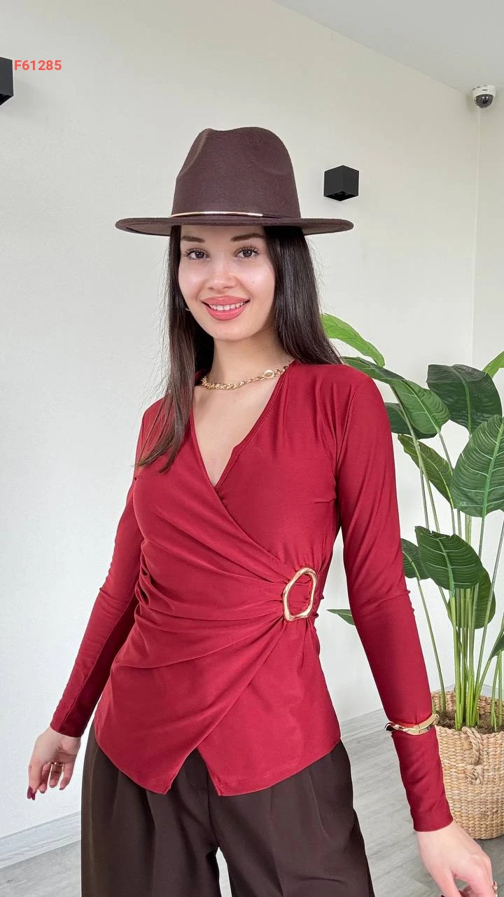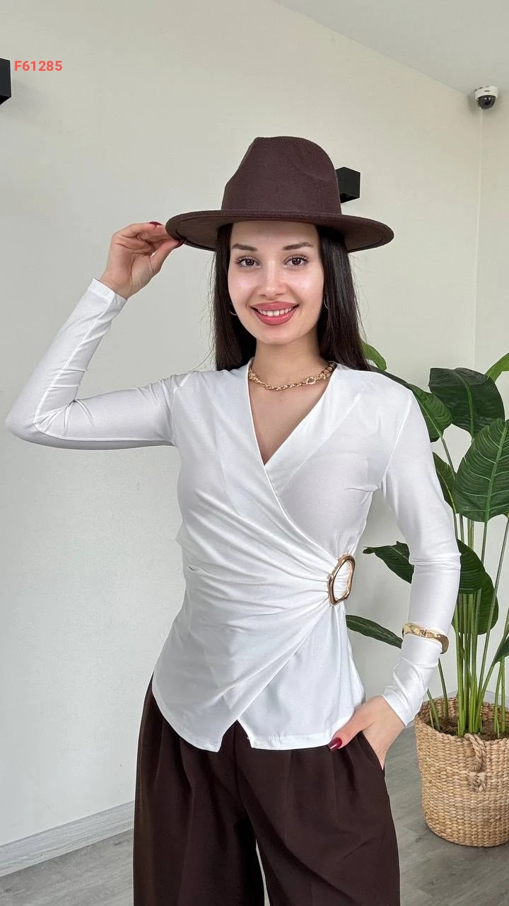 بلوزة مجمعة بإبزيم جانبي