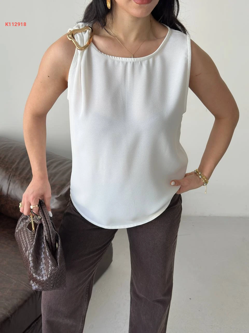 بلوزة حفر بإبزيم عالكتف