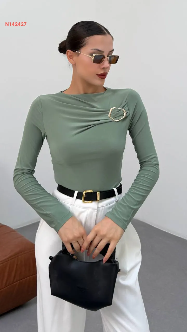بلوزة بدي مجمعة بإبزيم