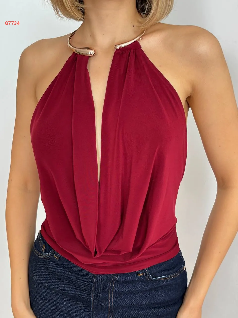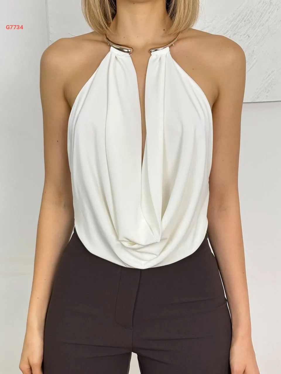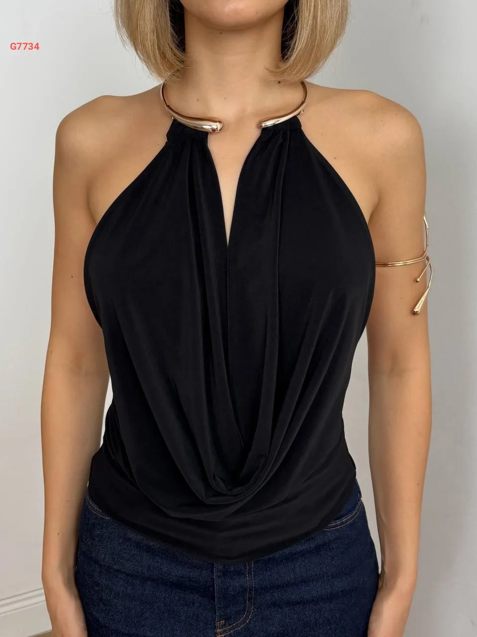 بلوزة باكسسوار عالرقبة وياقة ديغاجي
