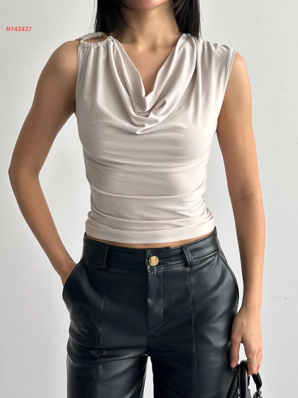 بلوزة حفر بياقة ديغاجي وإبزيم عالكتف