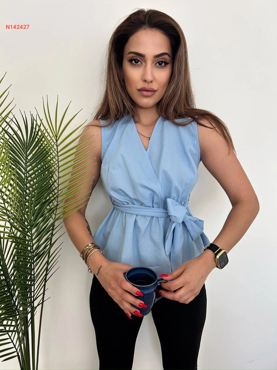 بلوزة حفر بزنار ربط