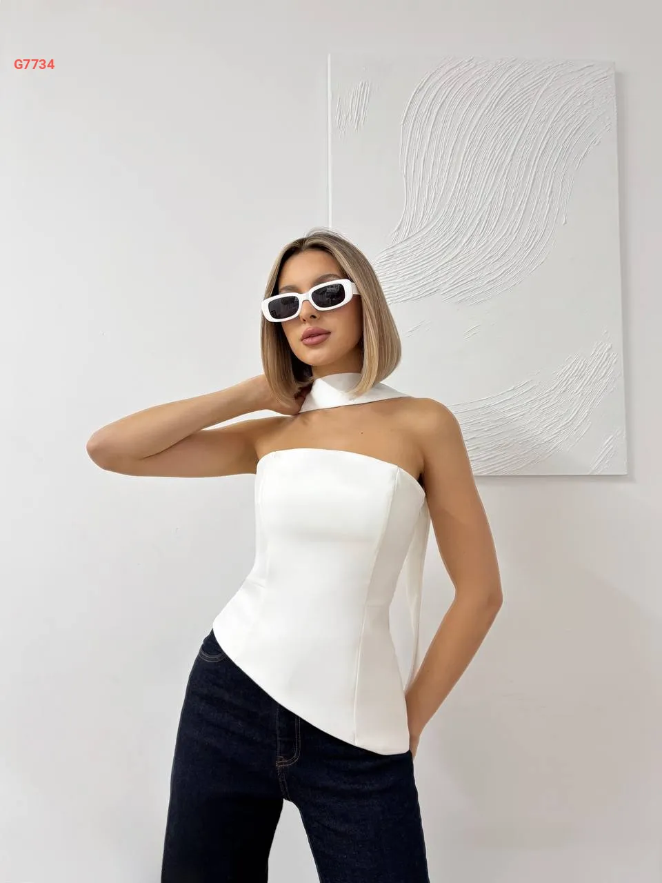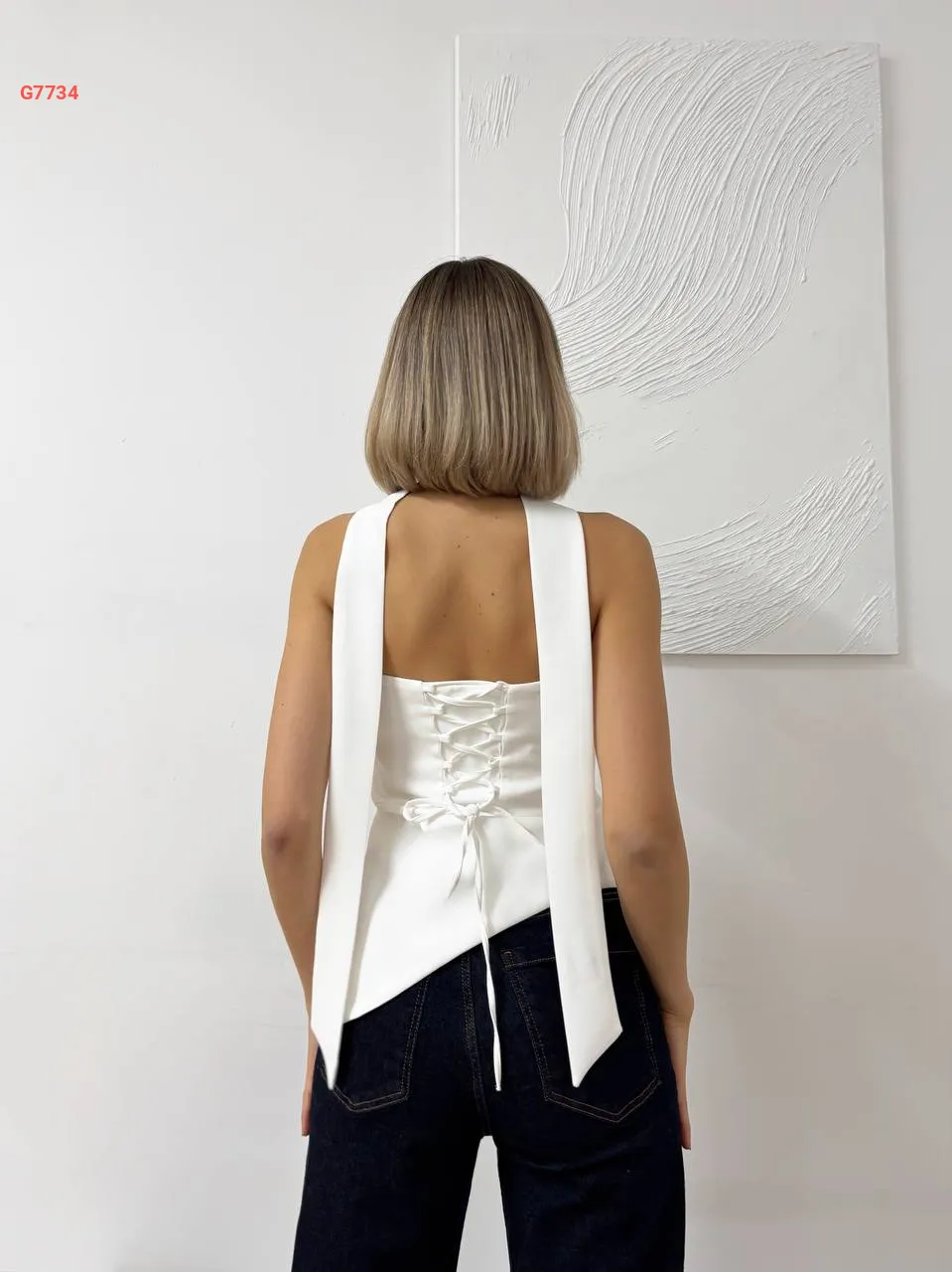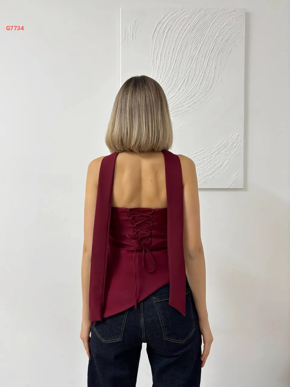 بلوزة cut بربطات خلفية وفولار عالرقبة