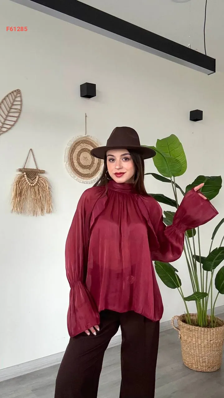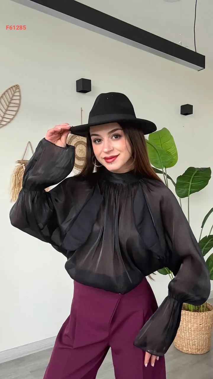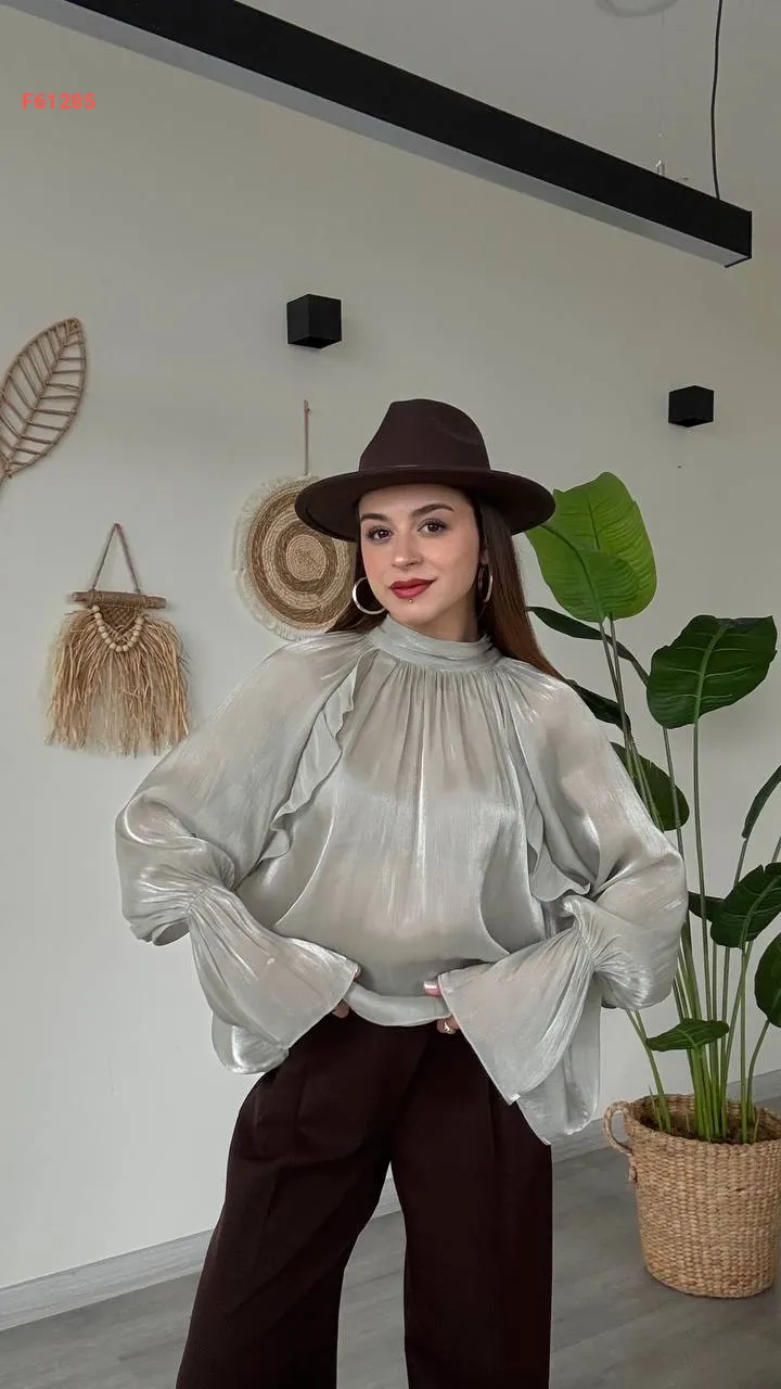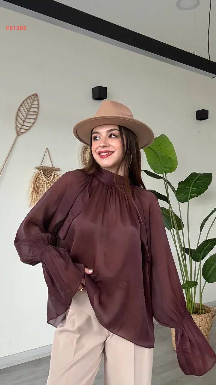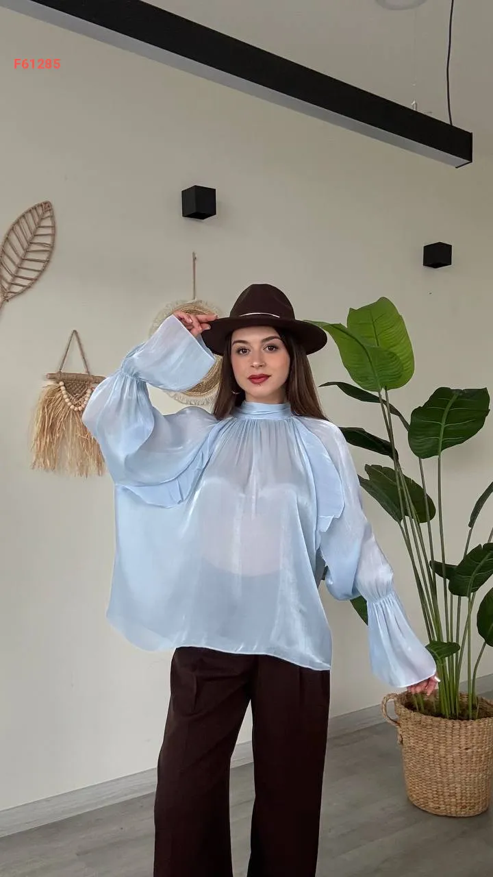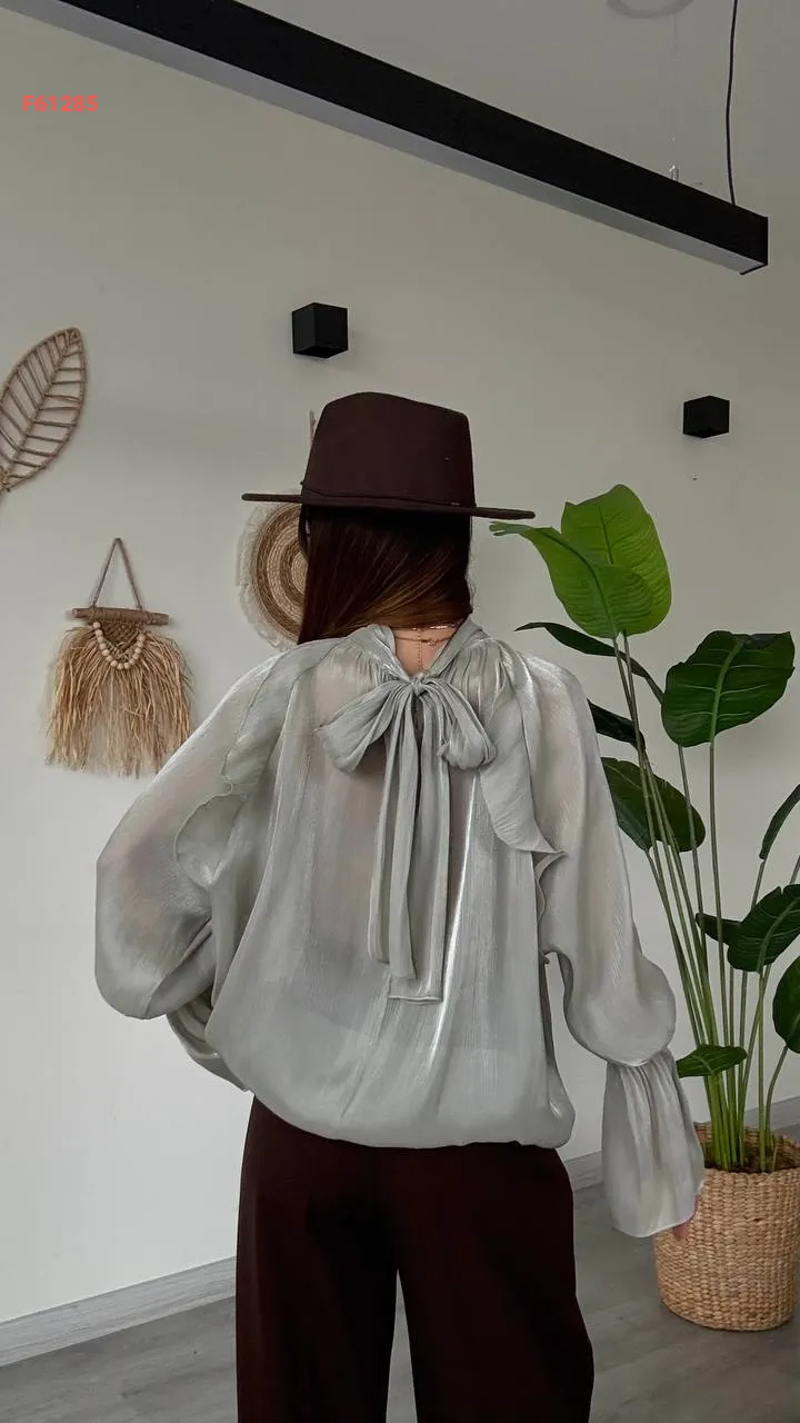 بلوزة بأكمام بالونية وربطة خلفية
