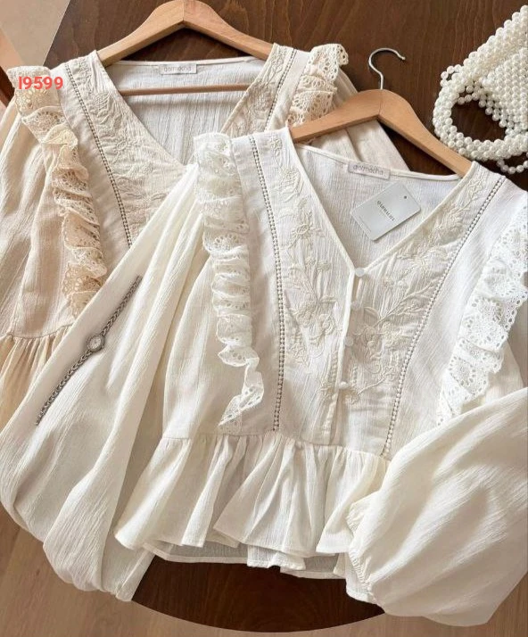 بلوزة بأكمام بالونية وأزرار