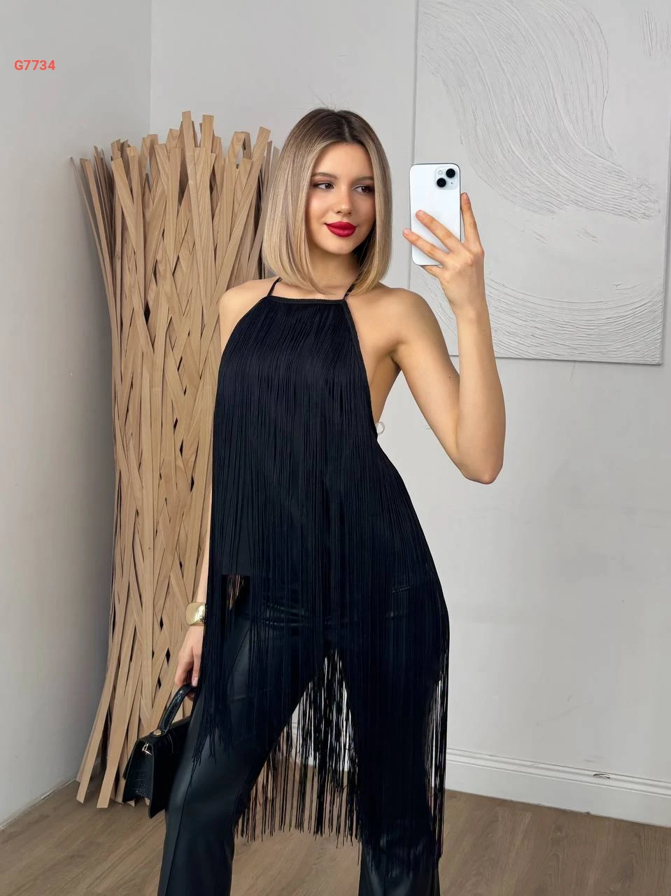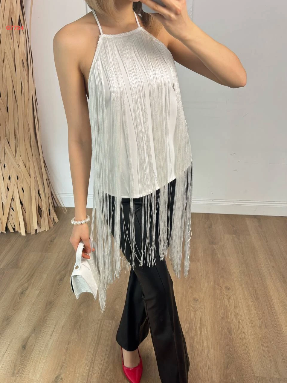 بلوزة مكشوفة الظهر بشراشيب