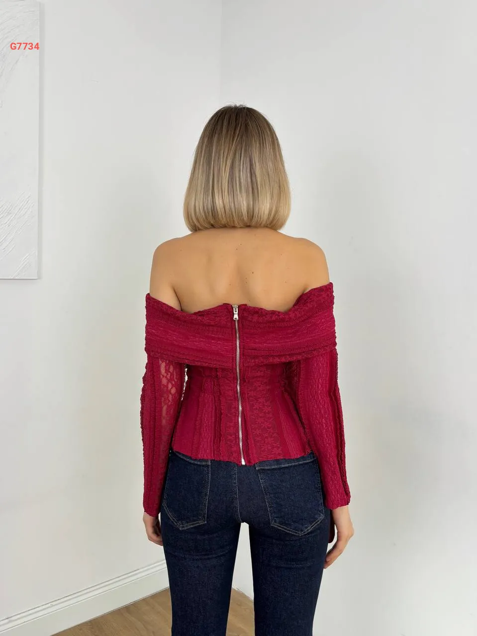 بلوزة بياقة مادونا وإبزيم