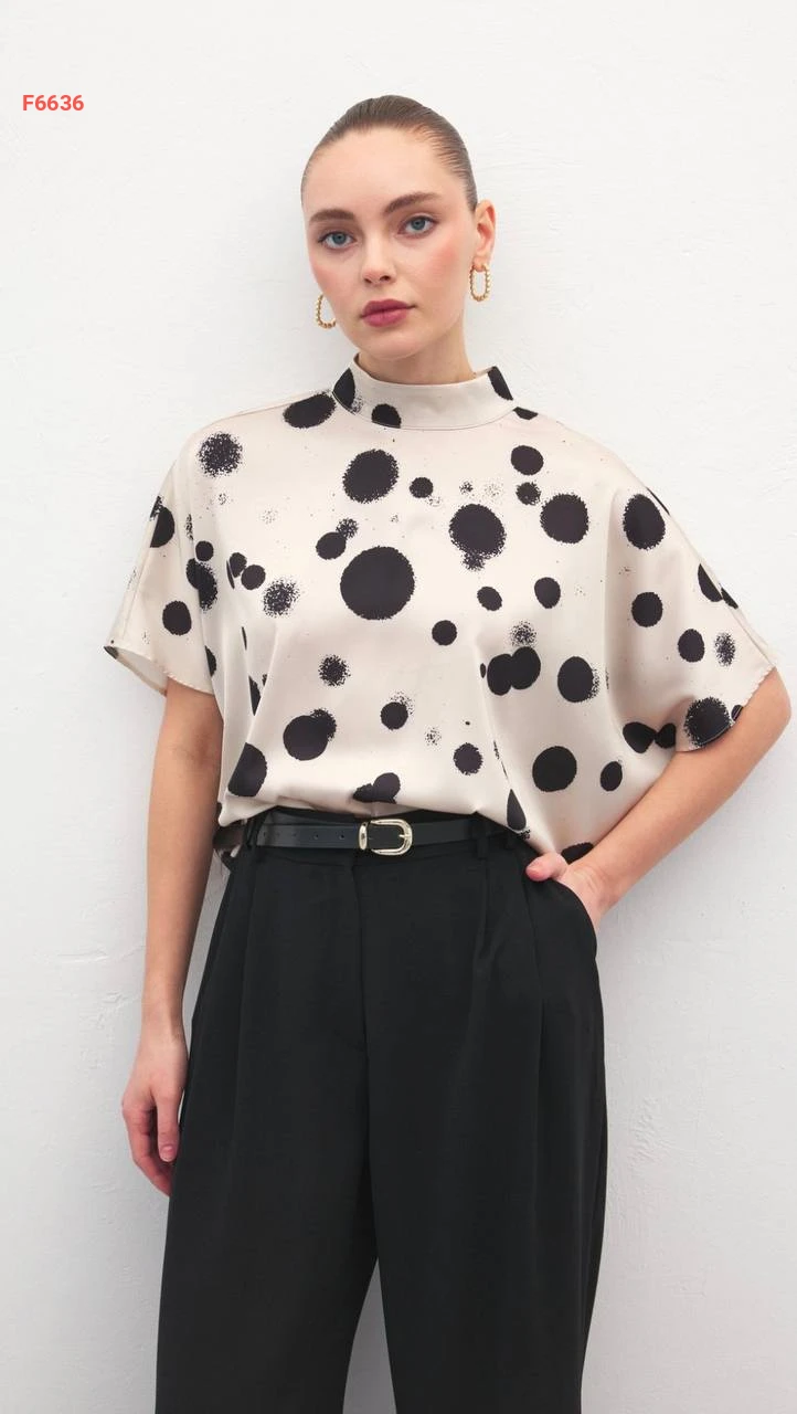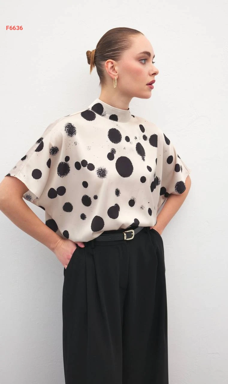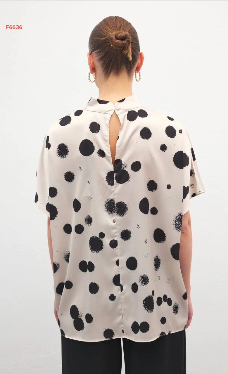 بلوزة بتفاصيل منقطة وأكمام قصيرة