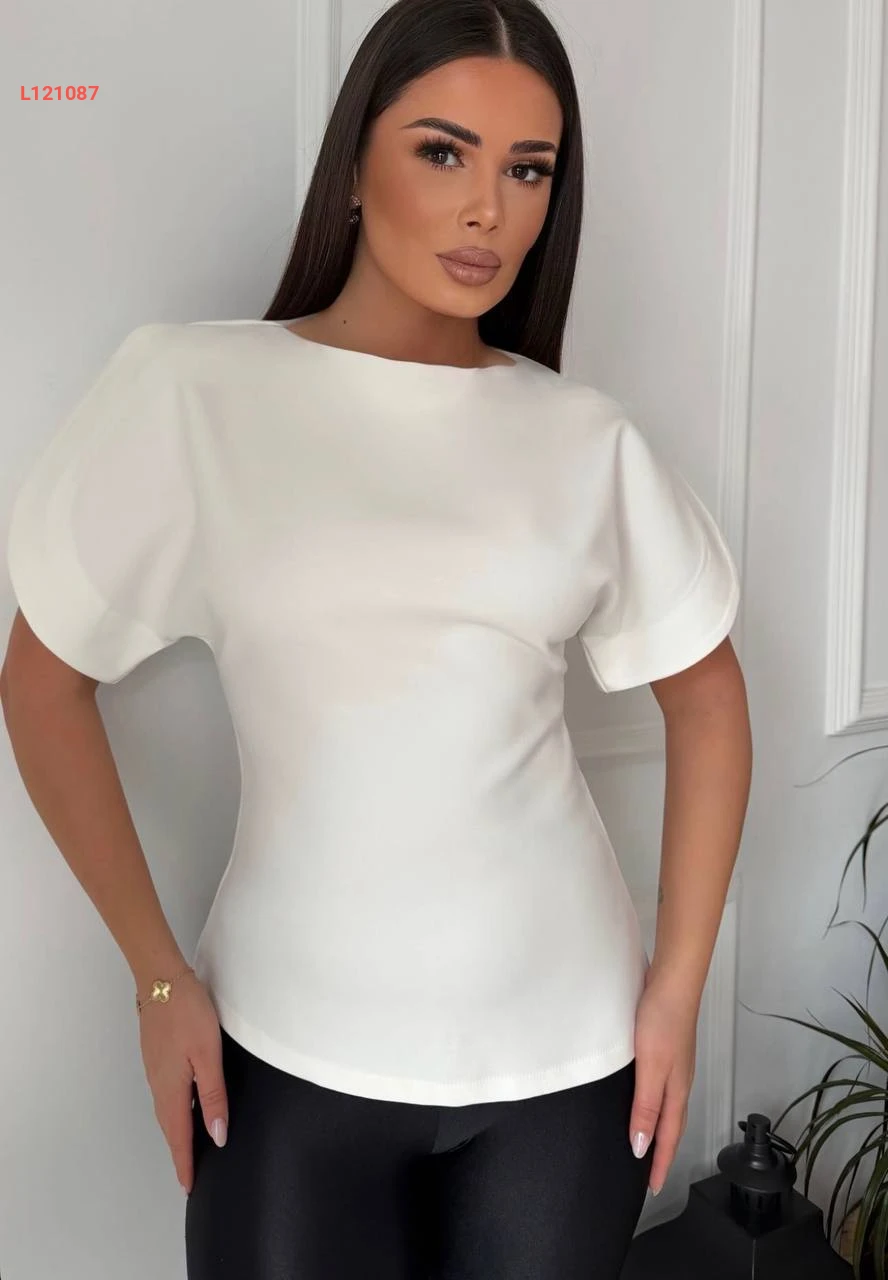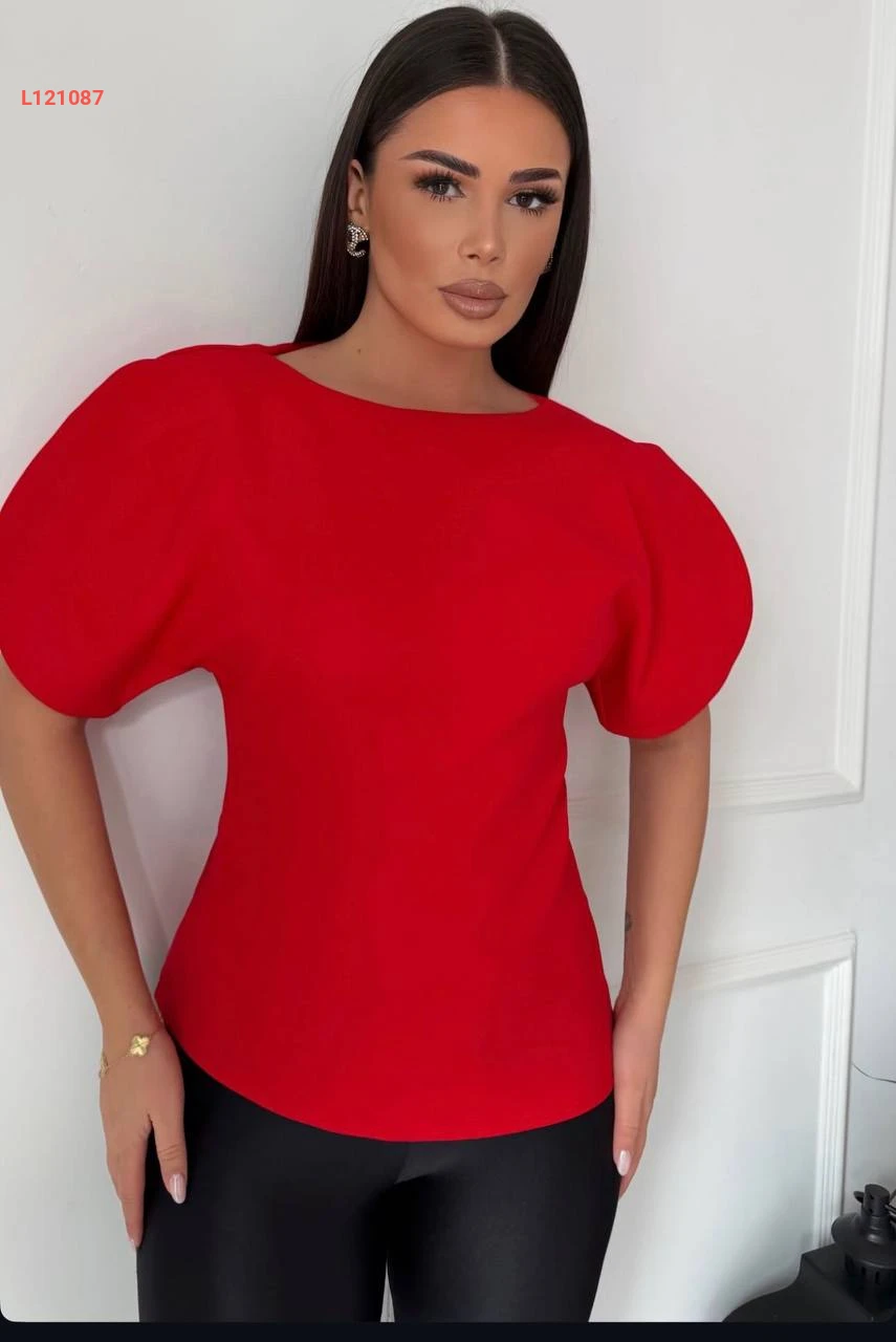بلوزة بأكمام قصيرة مفتوحة