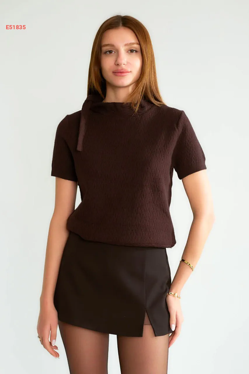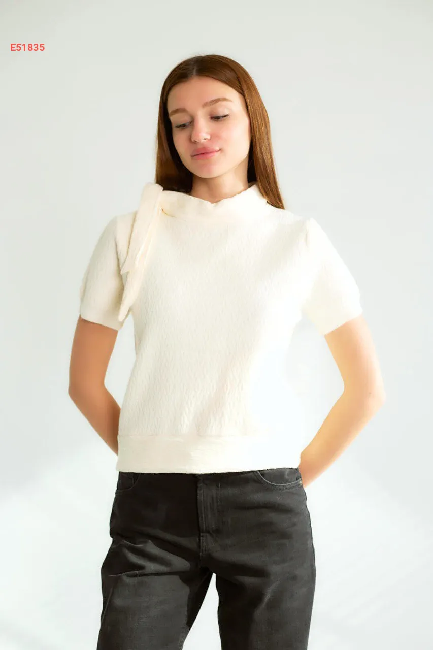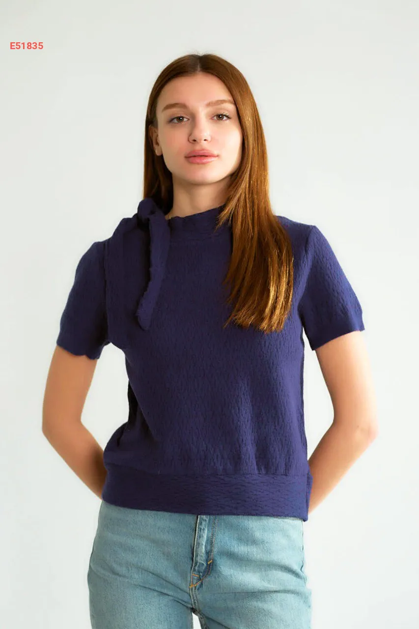 بلوزة نص كم بربطة جانبية على القبة