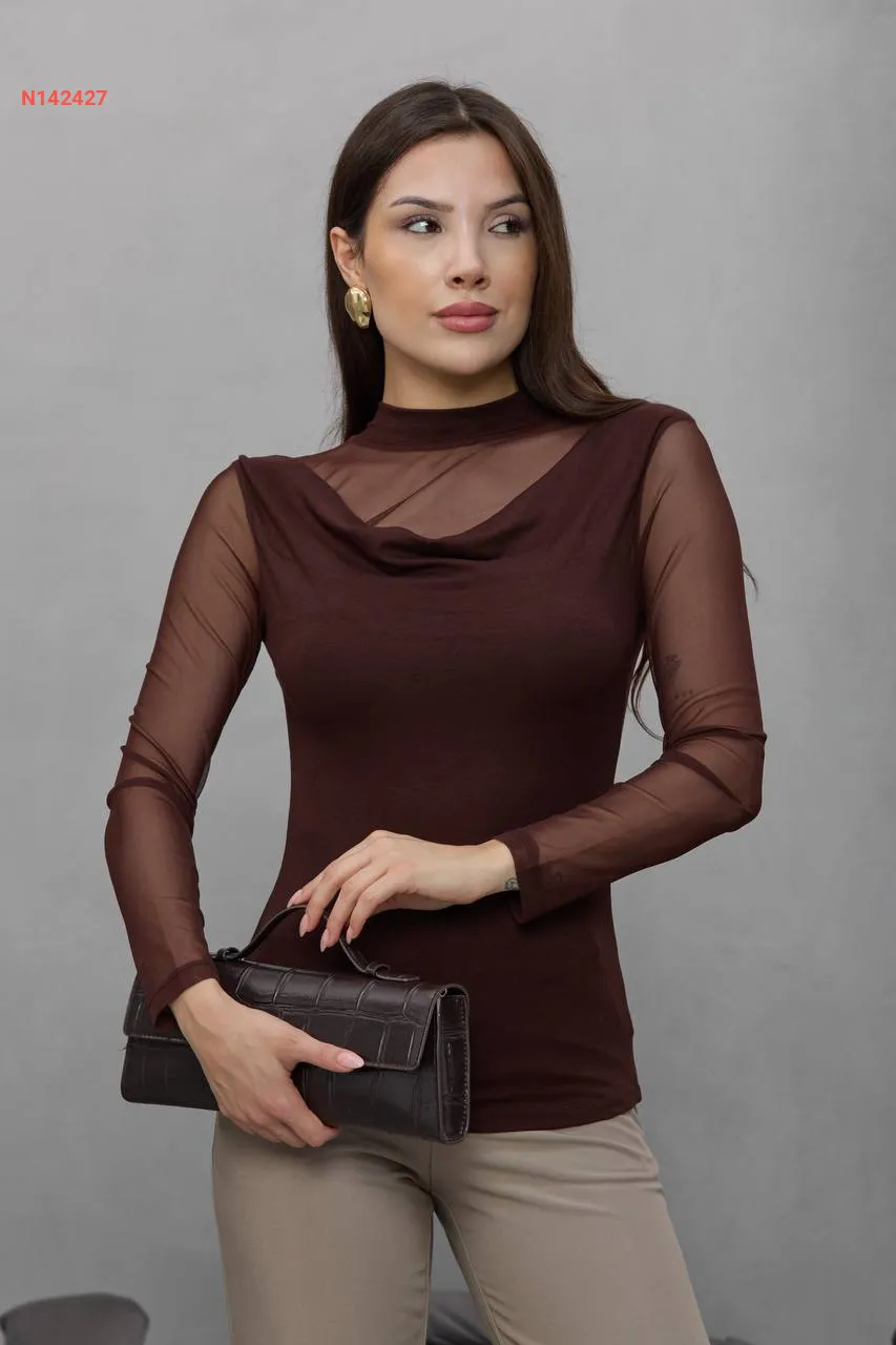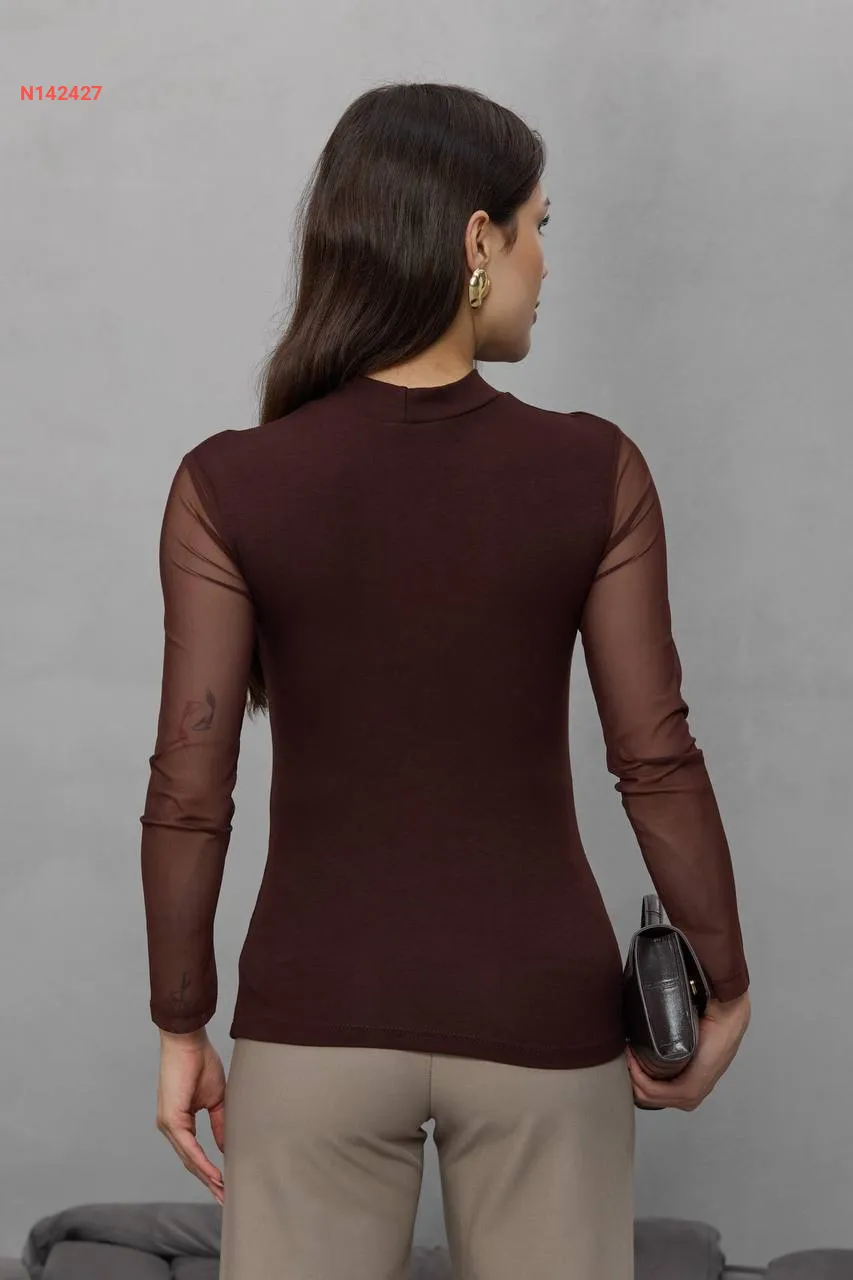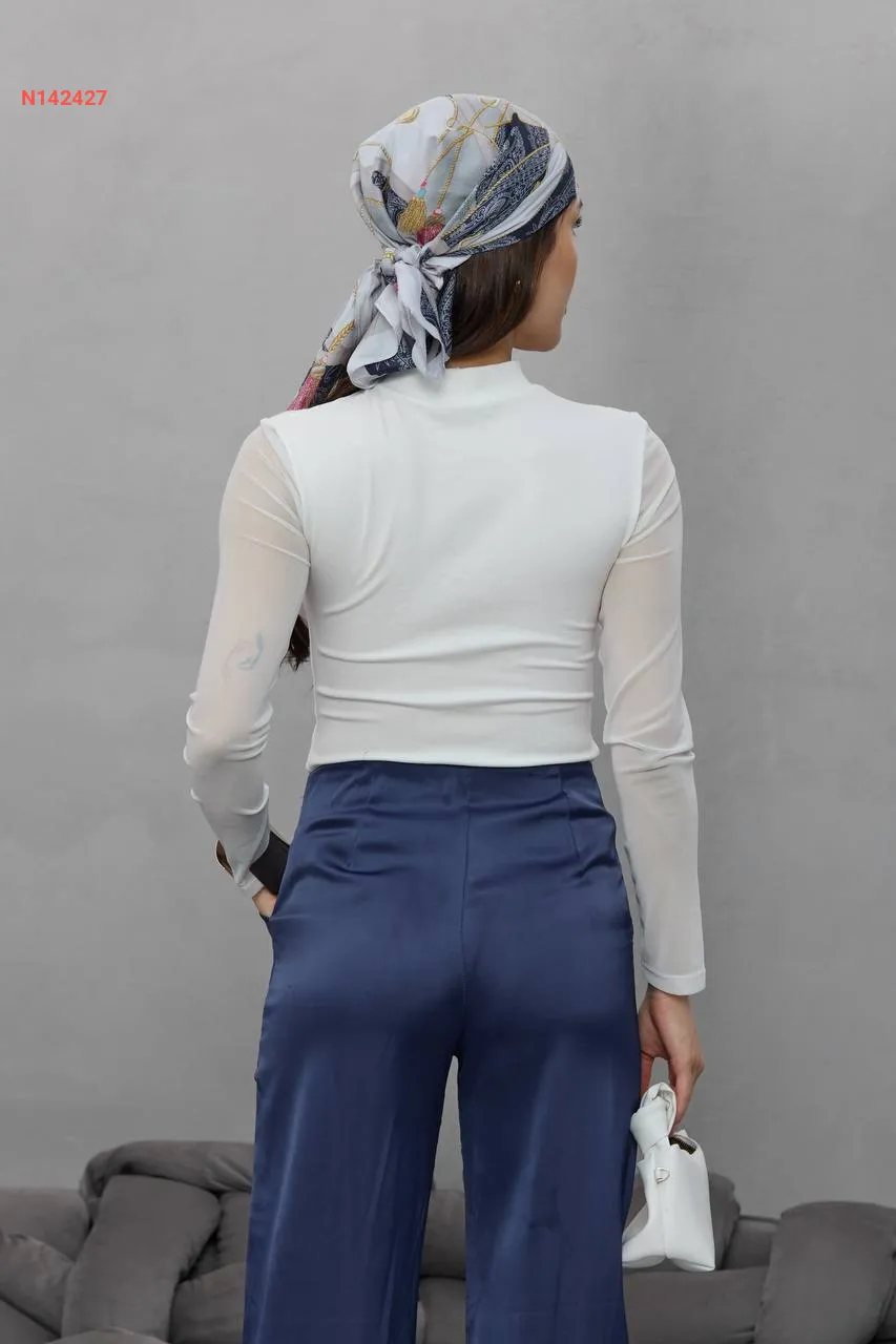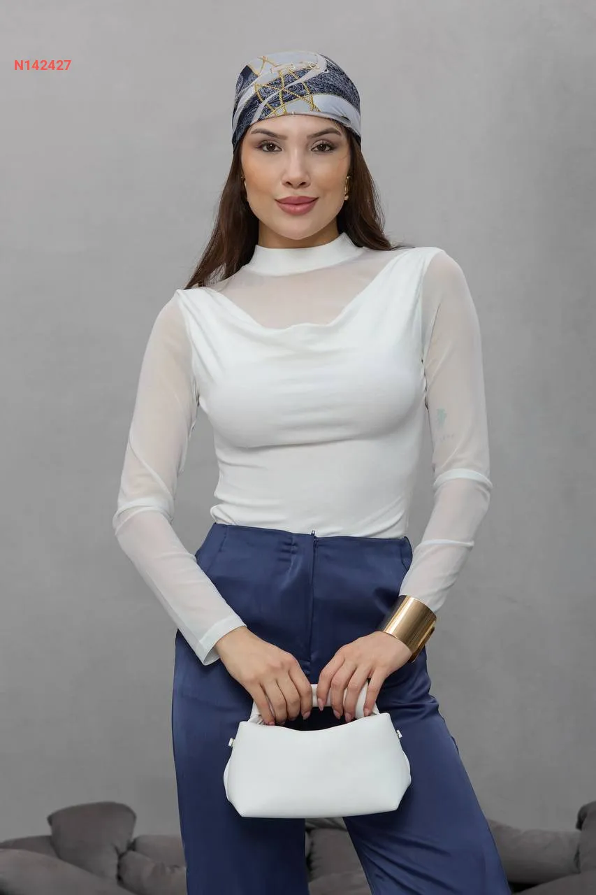 بلوزة بأكمام وياقة تول