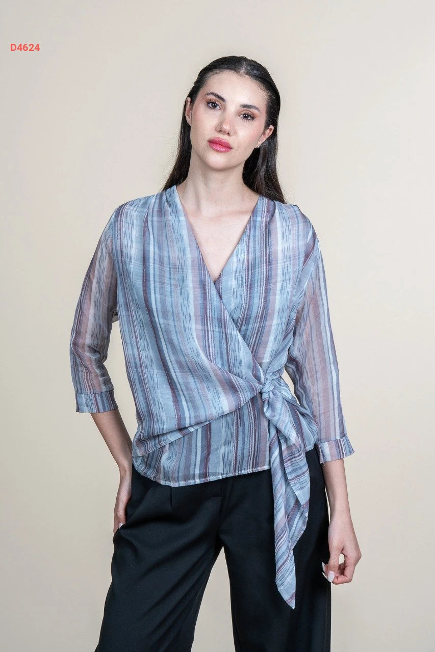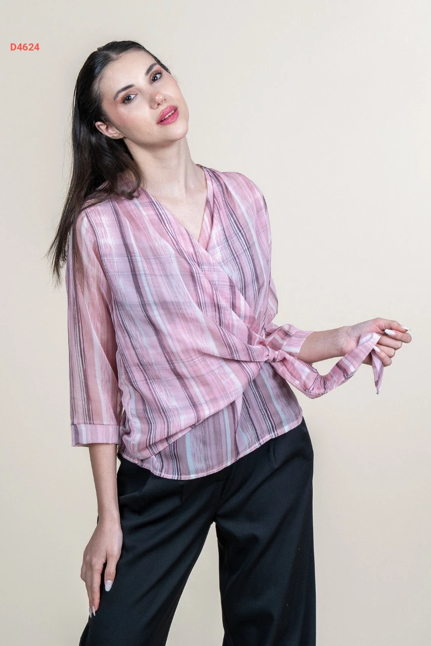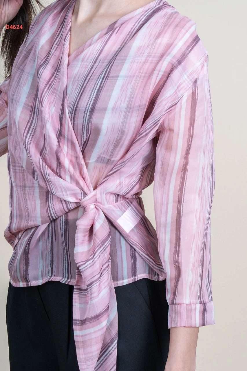 بلوزة بتفاصيل مقلمة وربطة جانبية