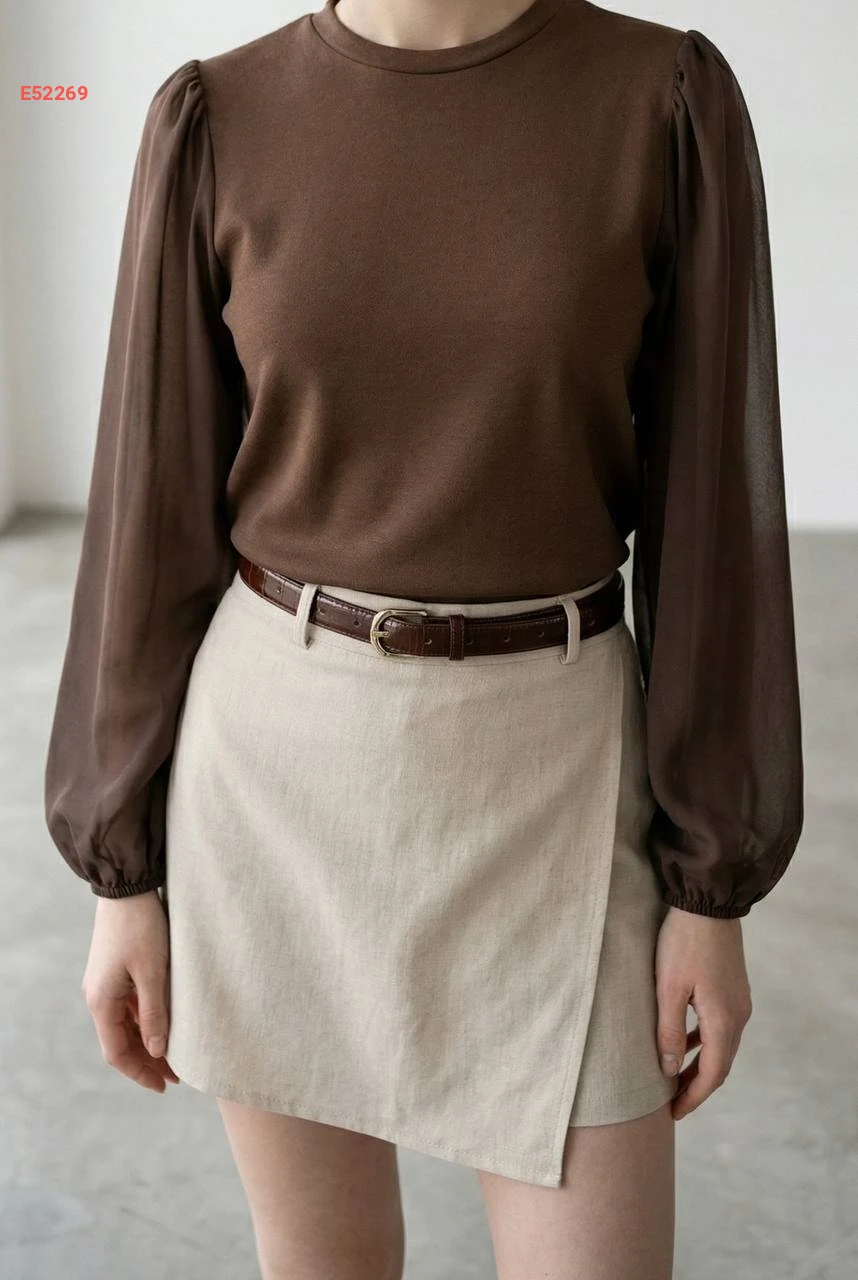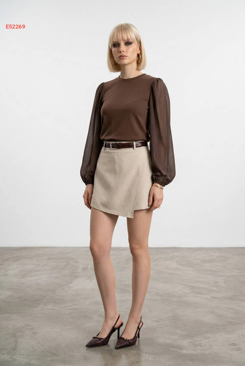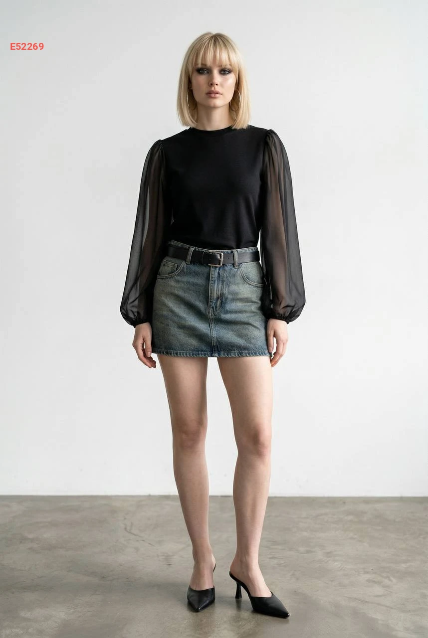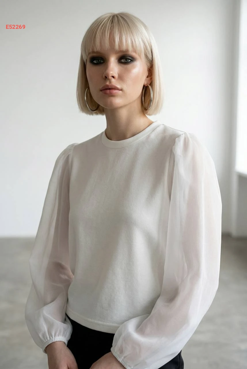 بلوزة بأكمام بالونية شفافة