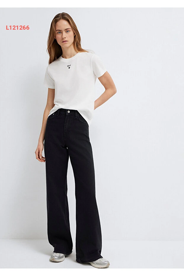 تيشيرت مافي ذو شعار مطبوع بتصميم شبه ضيق باللون الأبيض