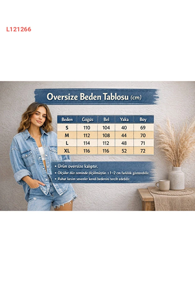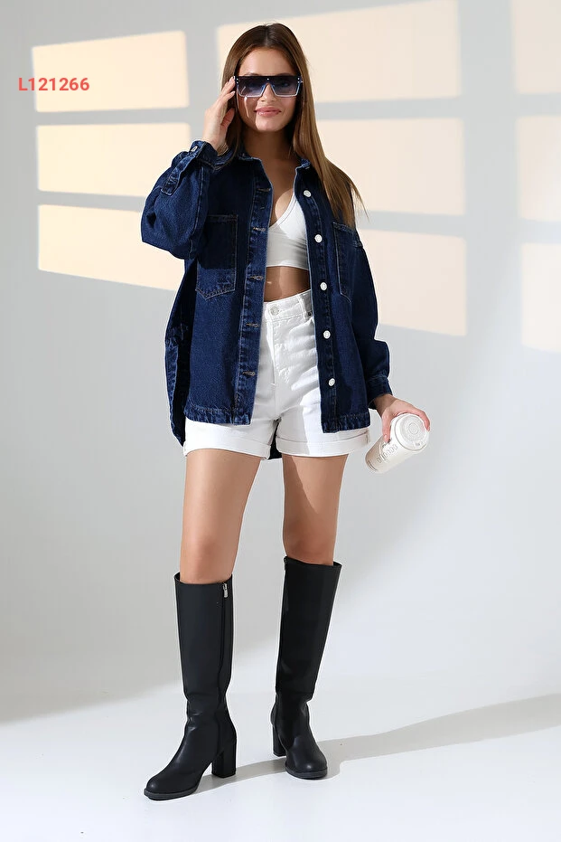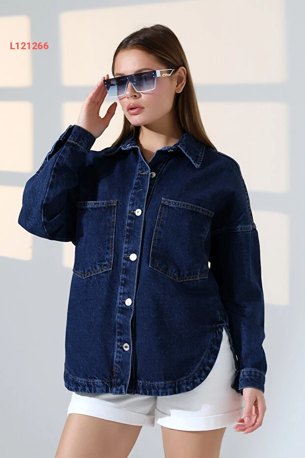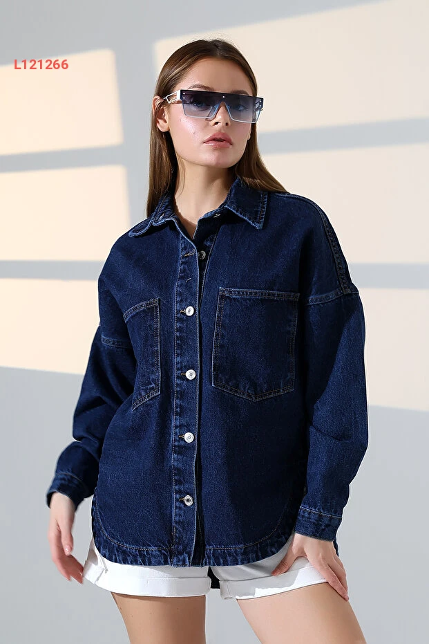 جينز وطني أزرق ندى - قميص جينز فضفاض بليّ كذلك الداكن - BNJ4904