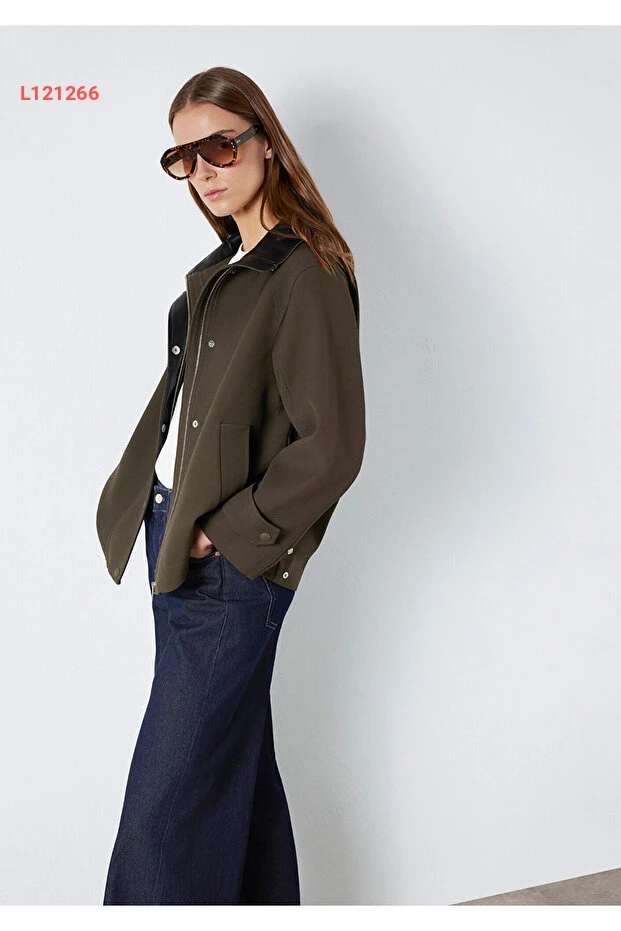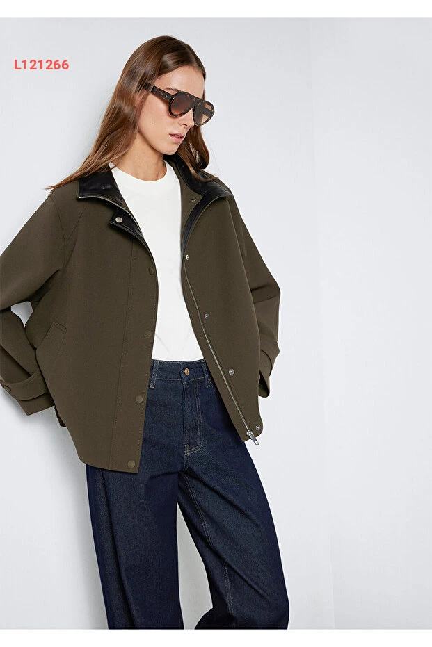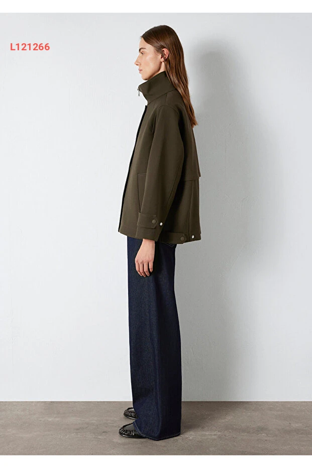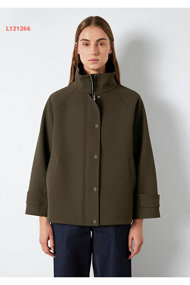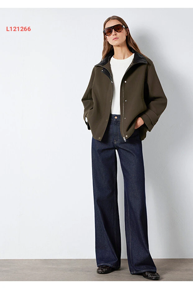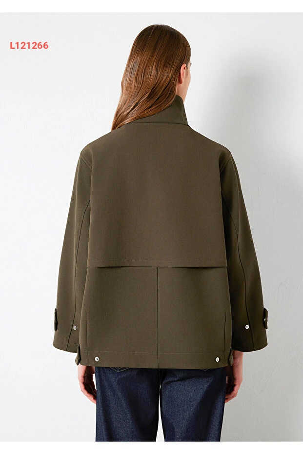جاكيت أخضر مافي بقصة واسعة وياقة مرتفعة 1110827-71543