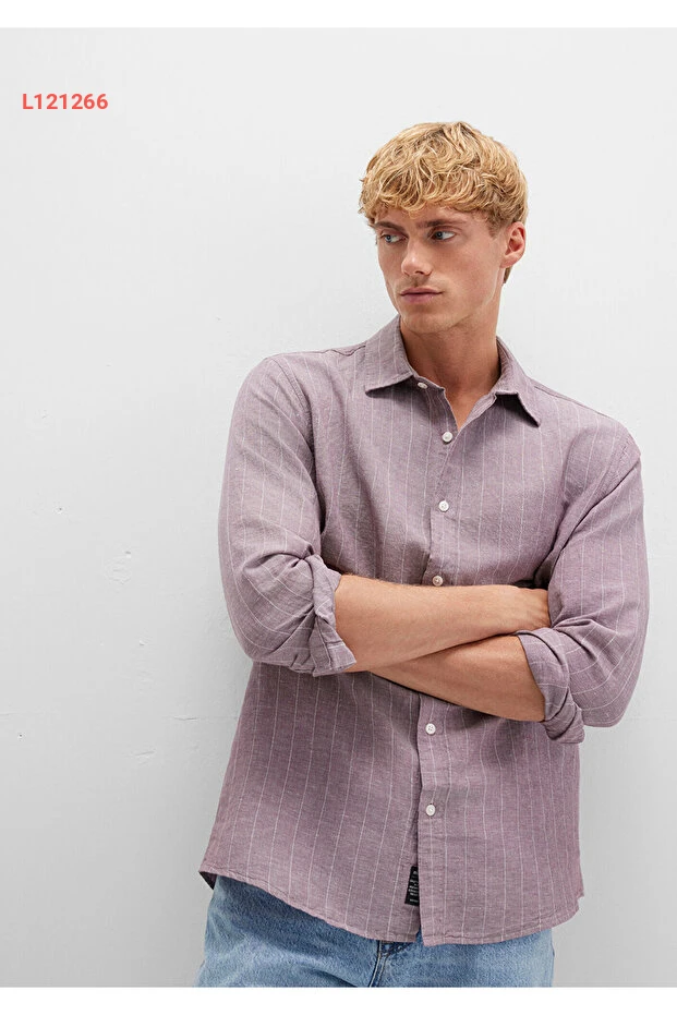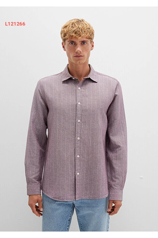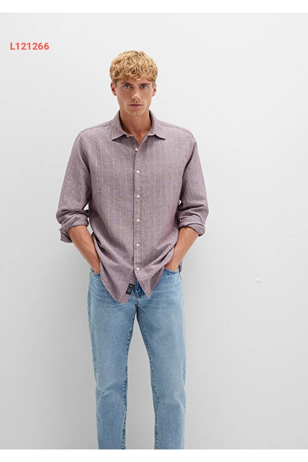 تألق بأناقة مع القميص الموف المزخرف بخطوط زرقاء، المصمم بنمط Regular Fit ليمنحك الراحة والحرية في الحركة. مصنوع من مواد عالية الجودة، هذا القميص يجمع بين الأناقة العصرية والملاءمة المثالية للمناسبات المختلفة، مما يجعله إضافة رائعة لخزانة ملابسك. اجعل كل مناسبة استثنائية مع لمسة من التفرد!