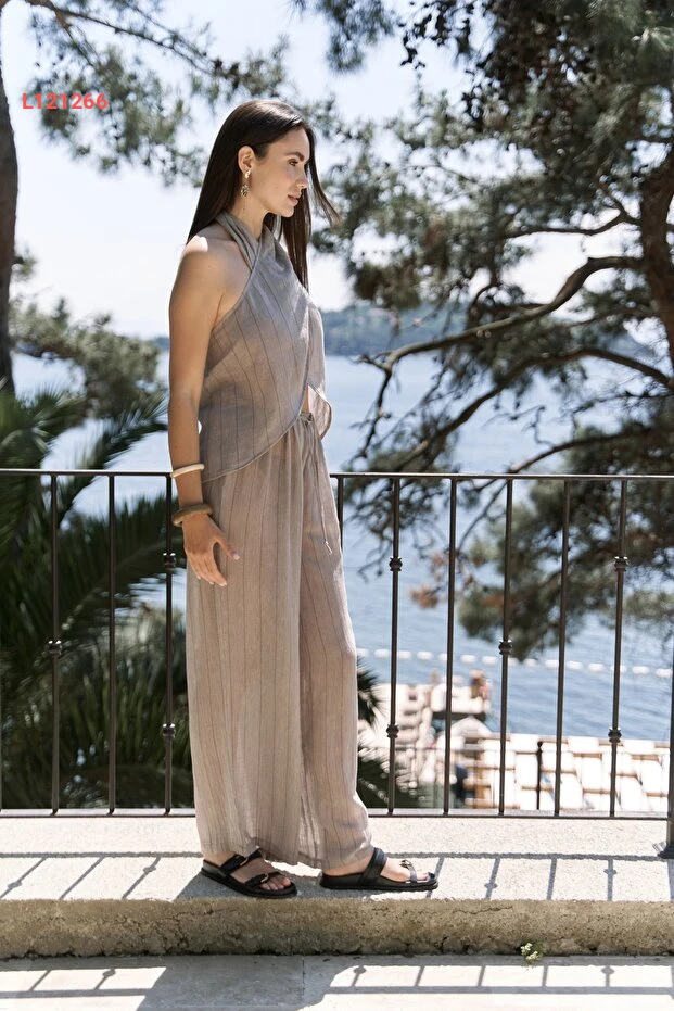 تألقي بأناقة لا مثيل لها مع طقم بنطلون كروپ BOHEMAİ برباط عنق، المصنوع من قماش الفيزون الفاخر الذي يضمن لك الراحة والحرية في الحركة. يأتي هذا التصميم العصري ليمنحك مظهرًا أنيقًا وجذابًا، مثالي للمناسبات المختلفة، حيث يمكنك تنسيقه بسهولة مع حذائك المفضل للحصول على إطلالة رائعة.