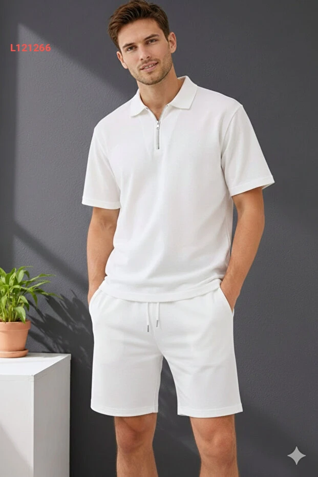 طقم تيشيرت شورت بولو يني موسم للرجال بقصة واسعة ونصف سحّاب