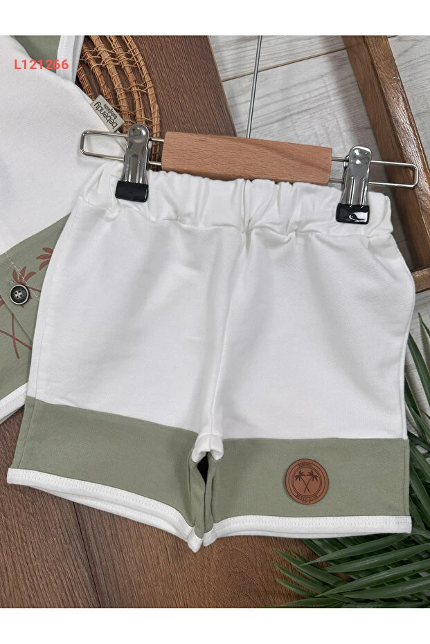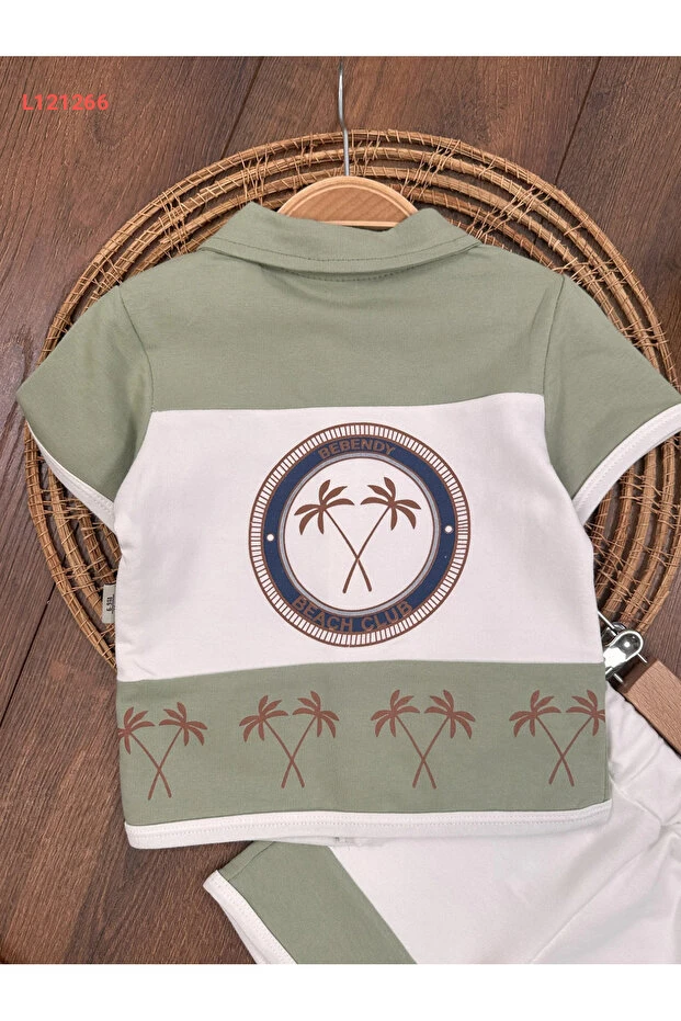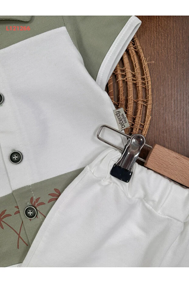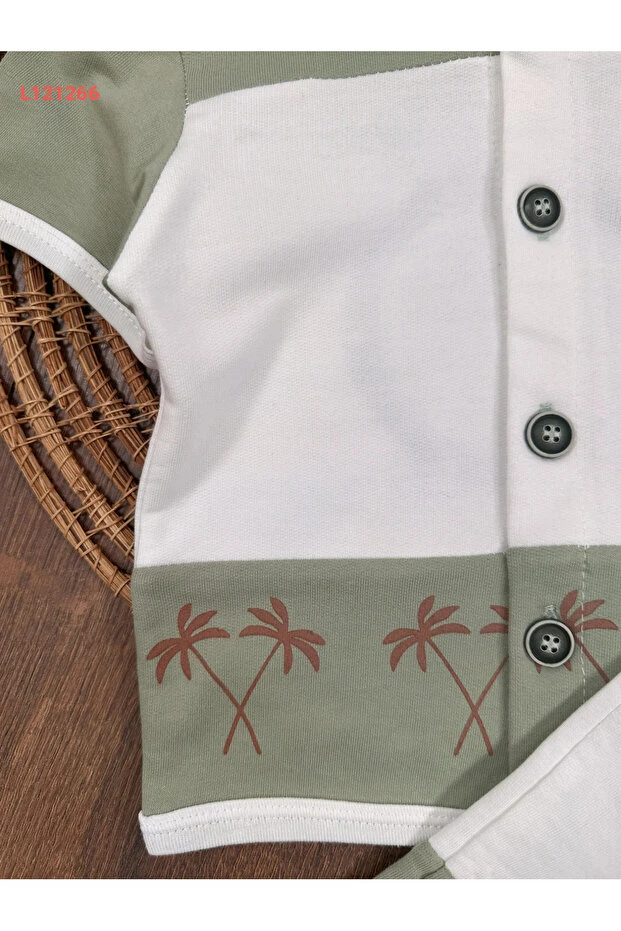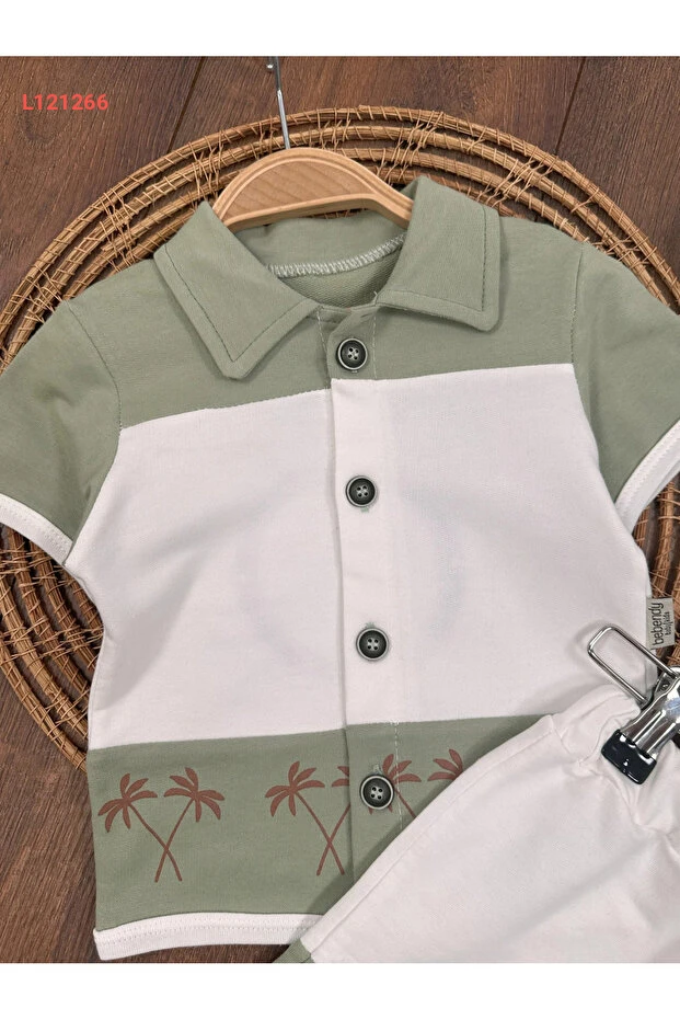 مجموعة طقم صيفي للأطفال الذكور بأزرار أمامية وبتفاصيل شارة من بولي بيبي هاواي