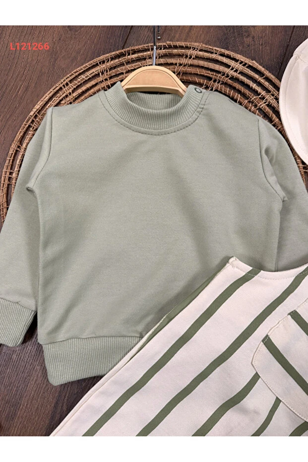 طقم أولادي ثلاثي الأجزاء بسروال سافاري مع قبعة خطية