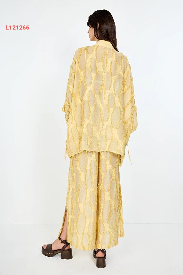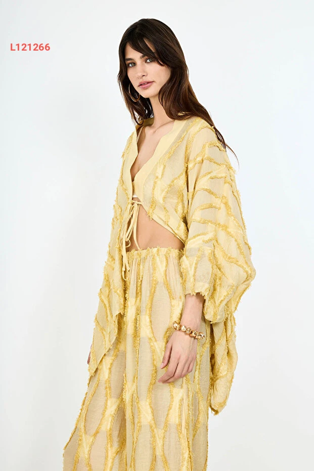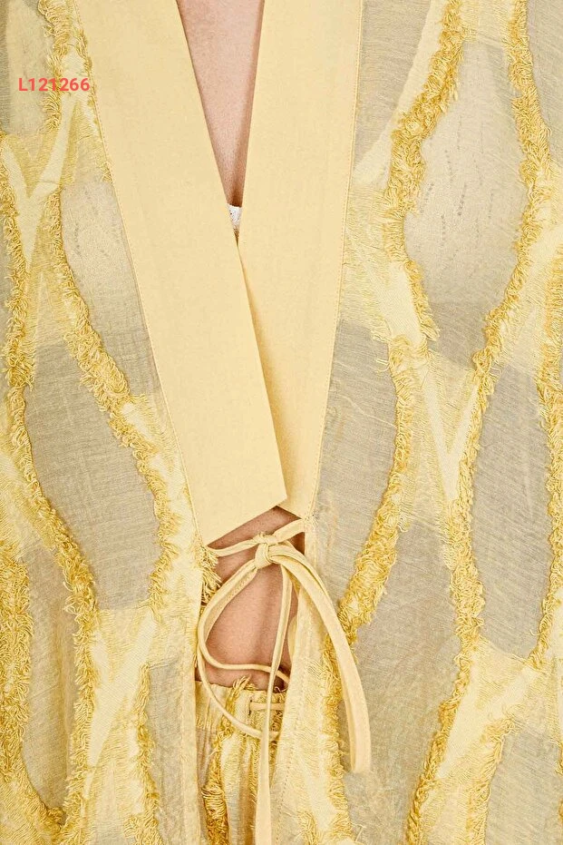 استمتع بأناقة استثنائية مع كافتان Boneqa Barcelona Sarı Jakarlı. يتميز بنقشة جاكار الفريدة ولون أصفر مشرق، مما يضيف لمسة من السحر إلى أي مناسبة. مصمم بمهارة ليوفر لك راحة لا توصف وأناقة لا تضاهى، مثالي للتألق في الحفلات أو الاسترخاء على الشاطئ.