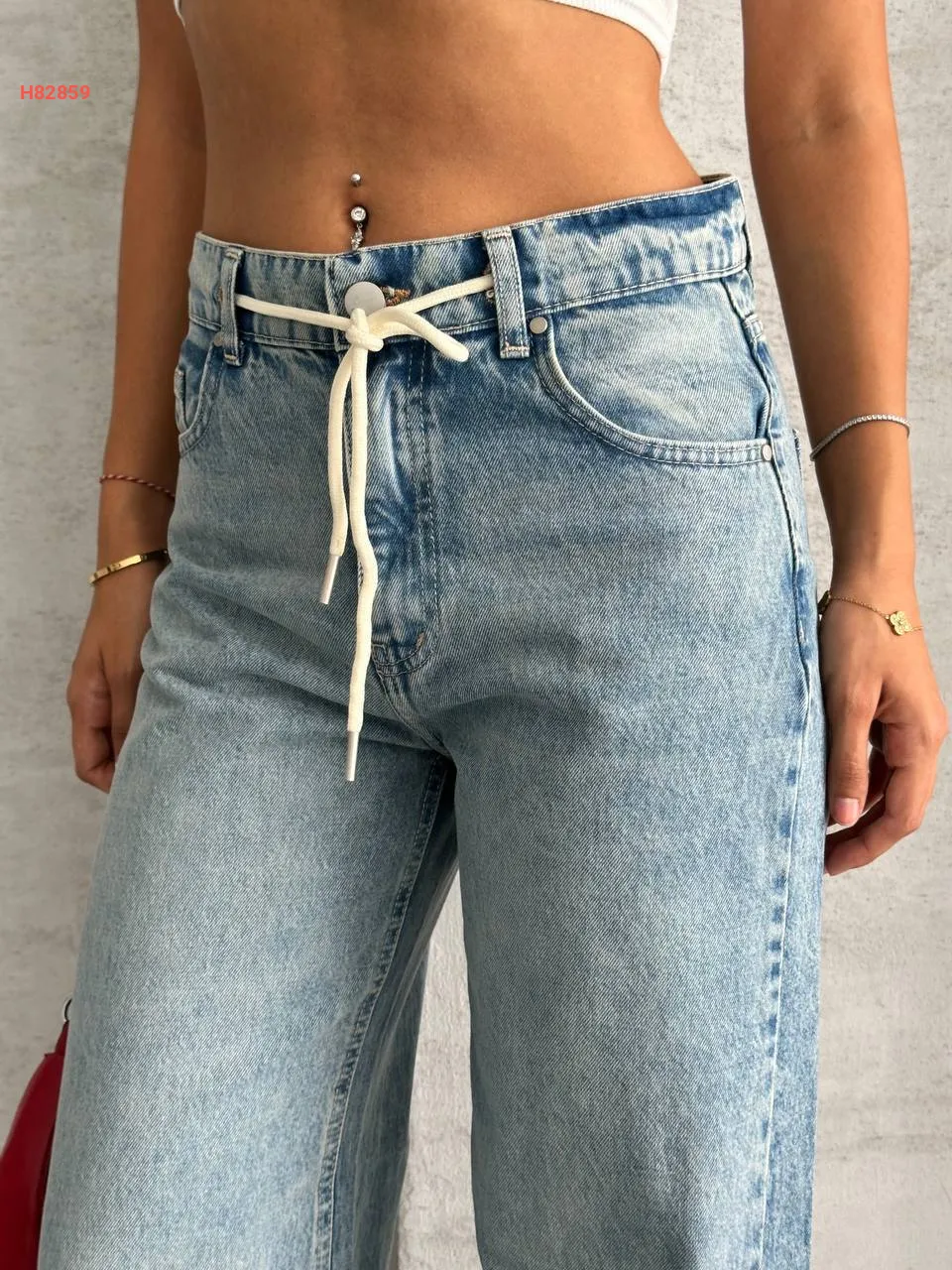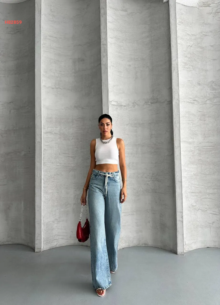 بنطال بوت كات خصر عالي مع ربطة خصر