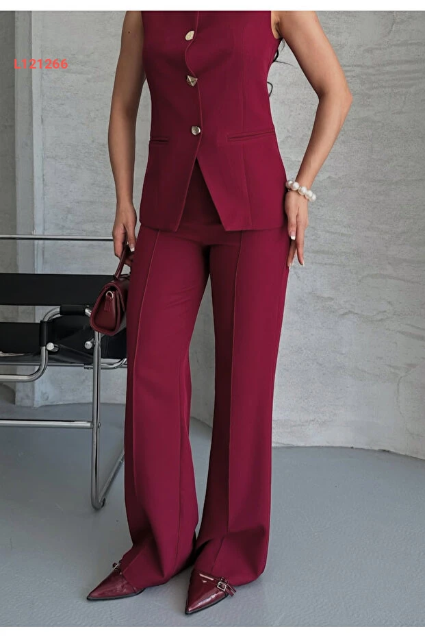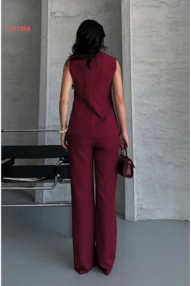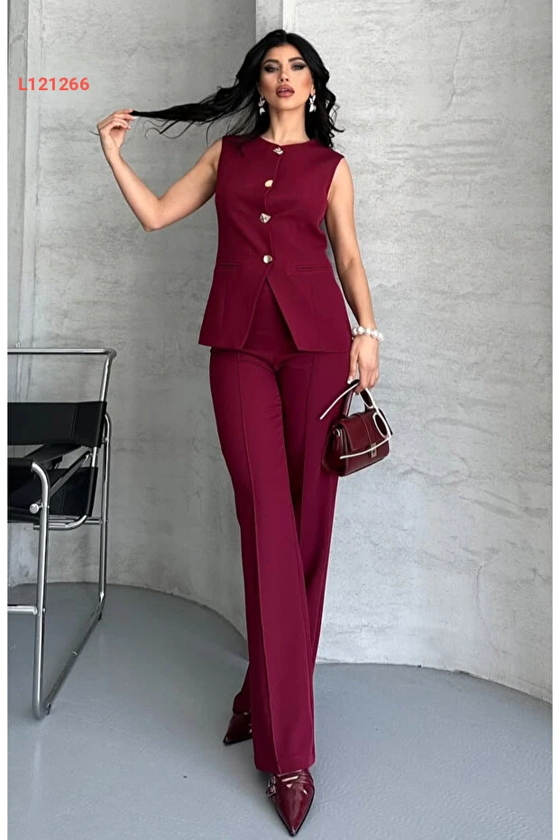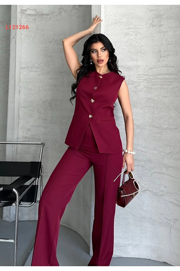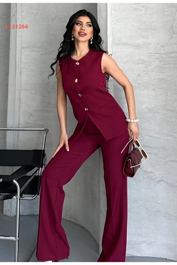استمتع بأناقة لا تضاهى مع مجموعة البذلة النسائية المصممة بذكاء، التي تتضمن سترة بيوك مزودة بأزرار وسروال أنيق بلون بورغندي الجذاب. تضفي هذه القطعة لمسة عصرية على إطلالتك، مما يجعلها مثالية للمناسبات الرسمية أو الخروجات اليومية. اشعري بالثقة والراحة في كل خطوة مع تصميم يجمع بين الأناقة والعملية.