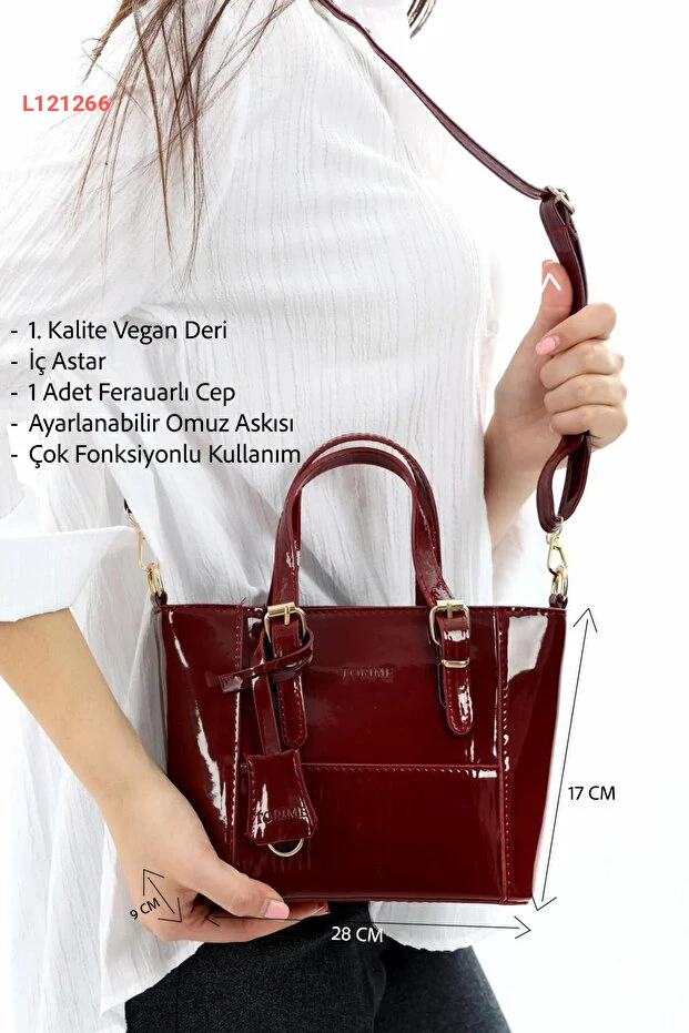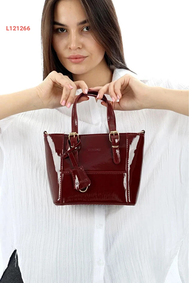 اكتشفي أناقتك مع حقيبة Torime Bordo Rugan الوسطى، المثالية للمرأة العصرية! تتميز بتصميم أنيق وعصري، مصنوعة من مواد نباتية صديقة للبيئة تناسب الاستخدام اليومي، مما يجعلها الاختيار الأمثل لجمالية تجمع بين الفخامة والراحة. اجعلي كل إطلالة لك تنبض بالأناقة والثقة!