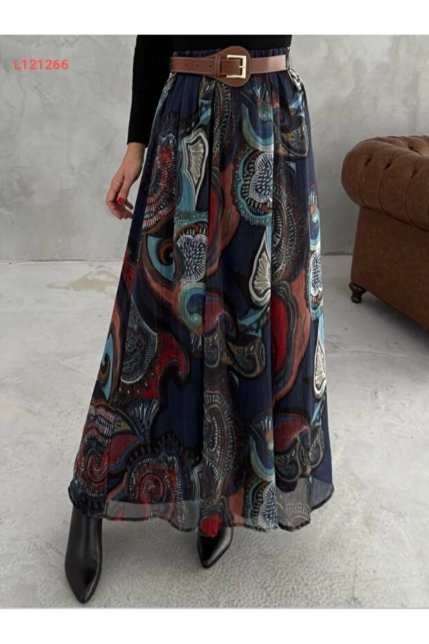 تنانير شيفون طويلة مزينة بنقوش وبتفاصيل حزام جيلد من بوتيك بيزا