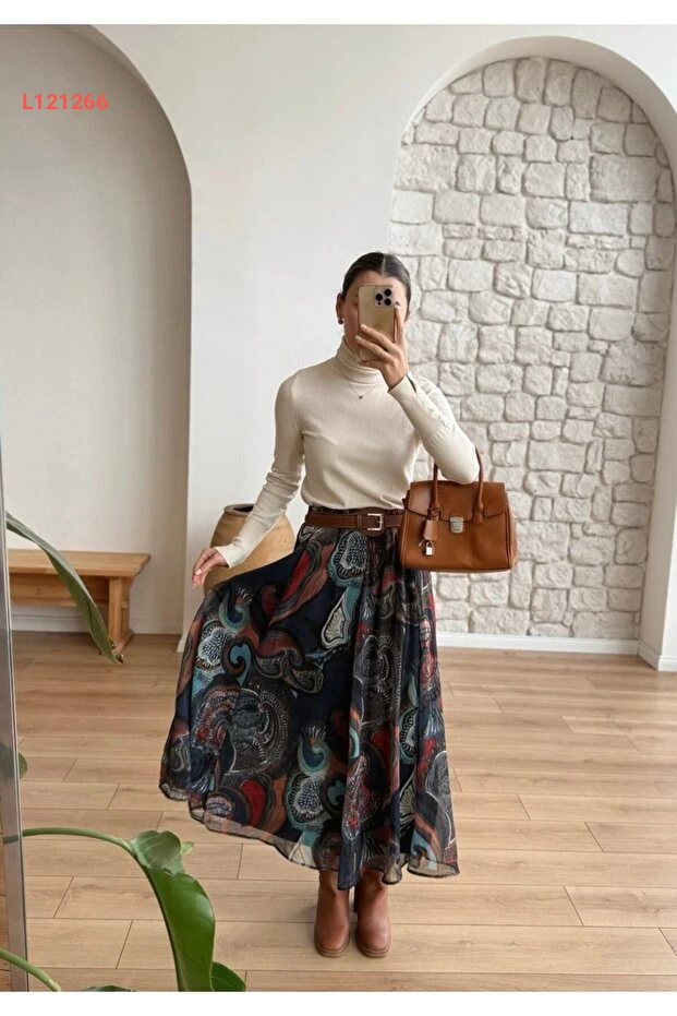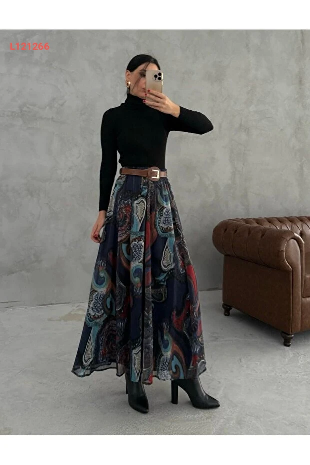 استمتعي بالأناقة والجمال مع تنورة "Butik Beyza" المصنوعة من الشيفون الطويل والمزودة بطبعة رائعة. تتميز بتصميمها العصري مع تفاصيل حزام التباين، مما يمنحك مظهرًا أنيقًا ومثاليًا لكل المناسبات. ارتديها بكل ثقة واستمتعي بإطلالة فريدة تعكس ذوقك الرفيع!