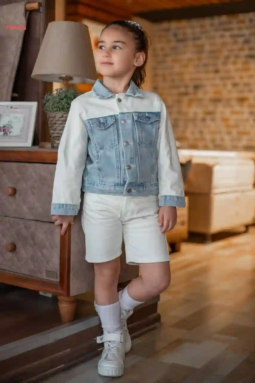 طقم شورت بناتي وجاكيت جينز ز...