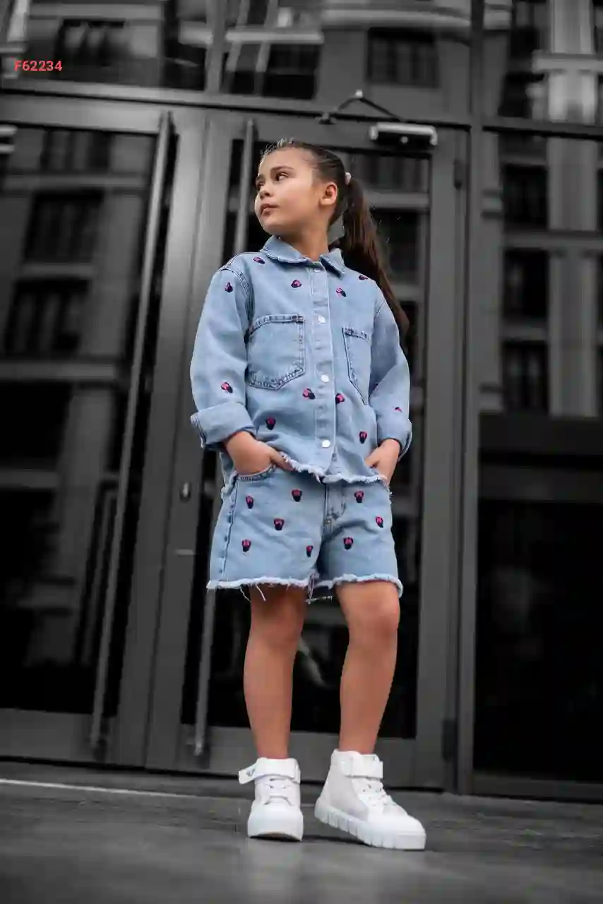 طقم شورت جينز بناتي ماركة