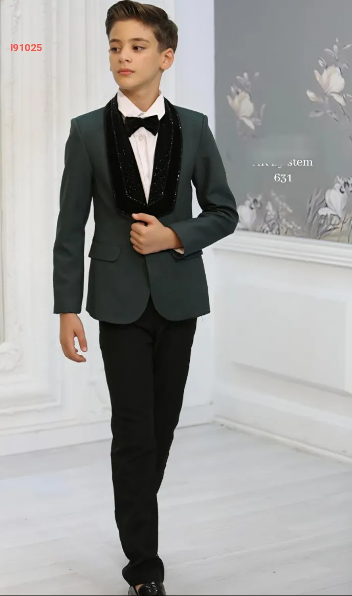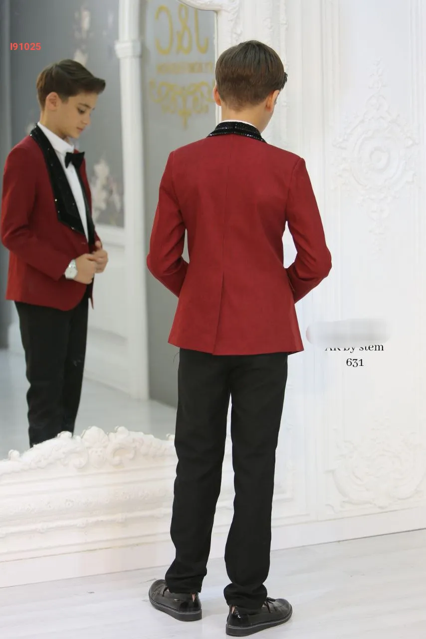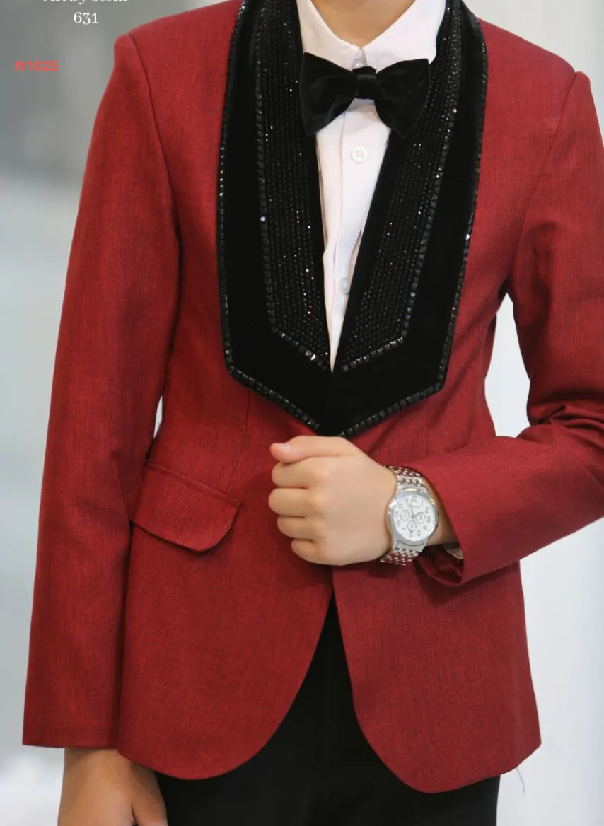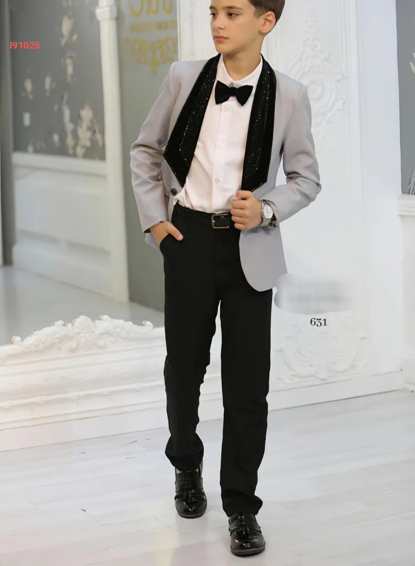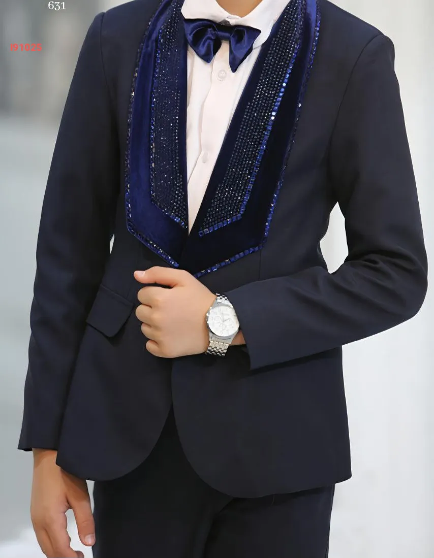 طقم صبياني مع جاكيت رسمي بياقة مرصعة