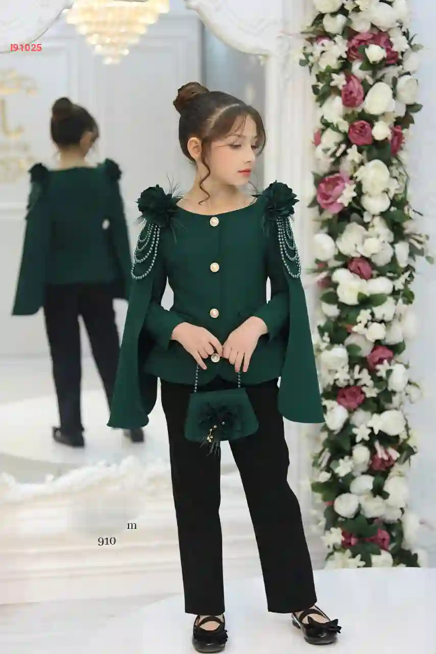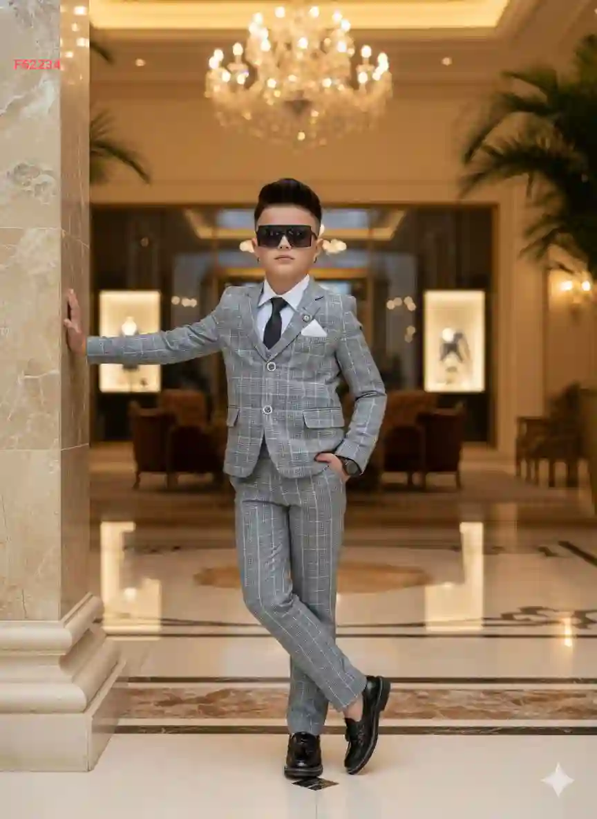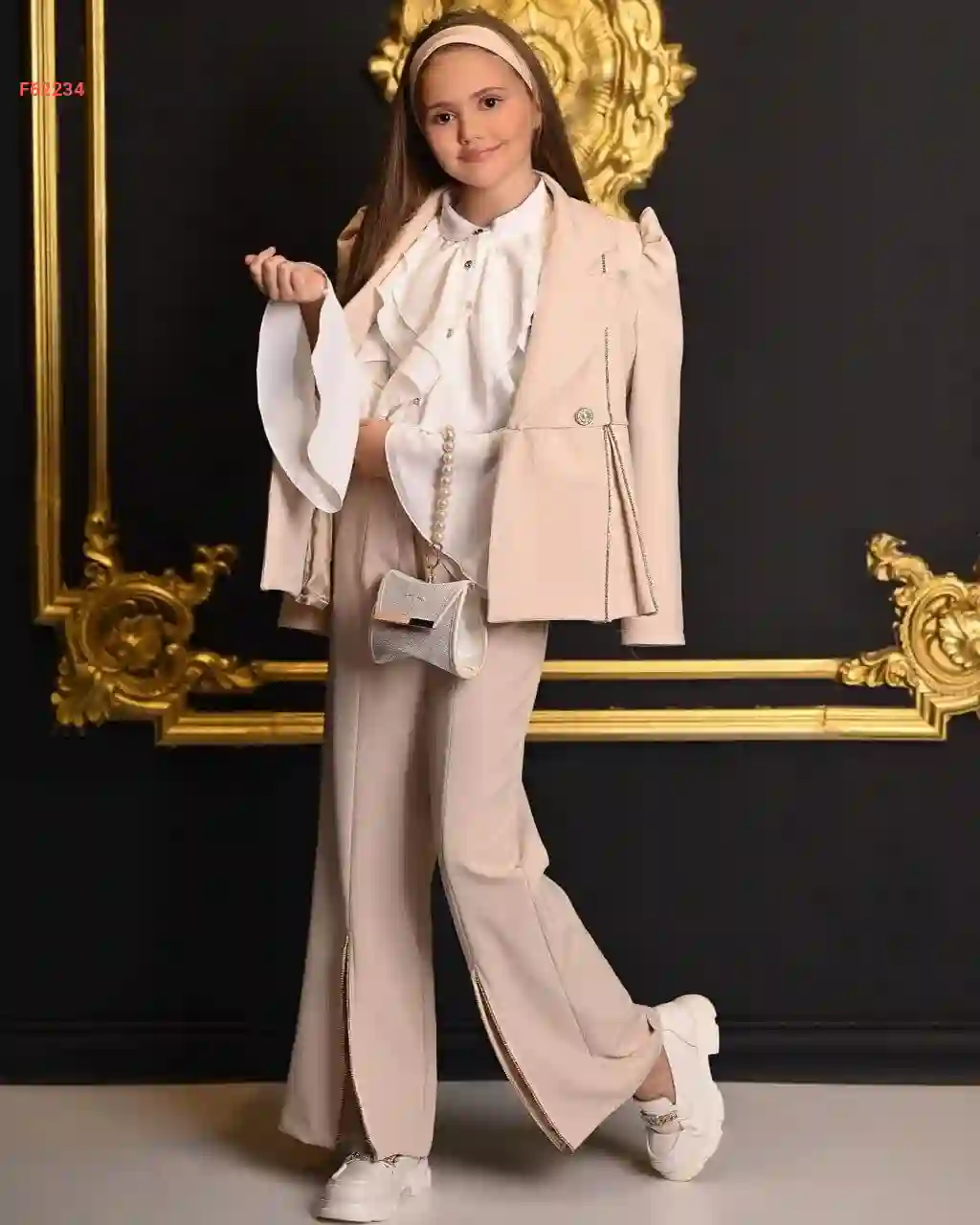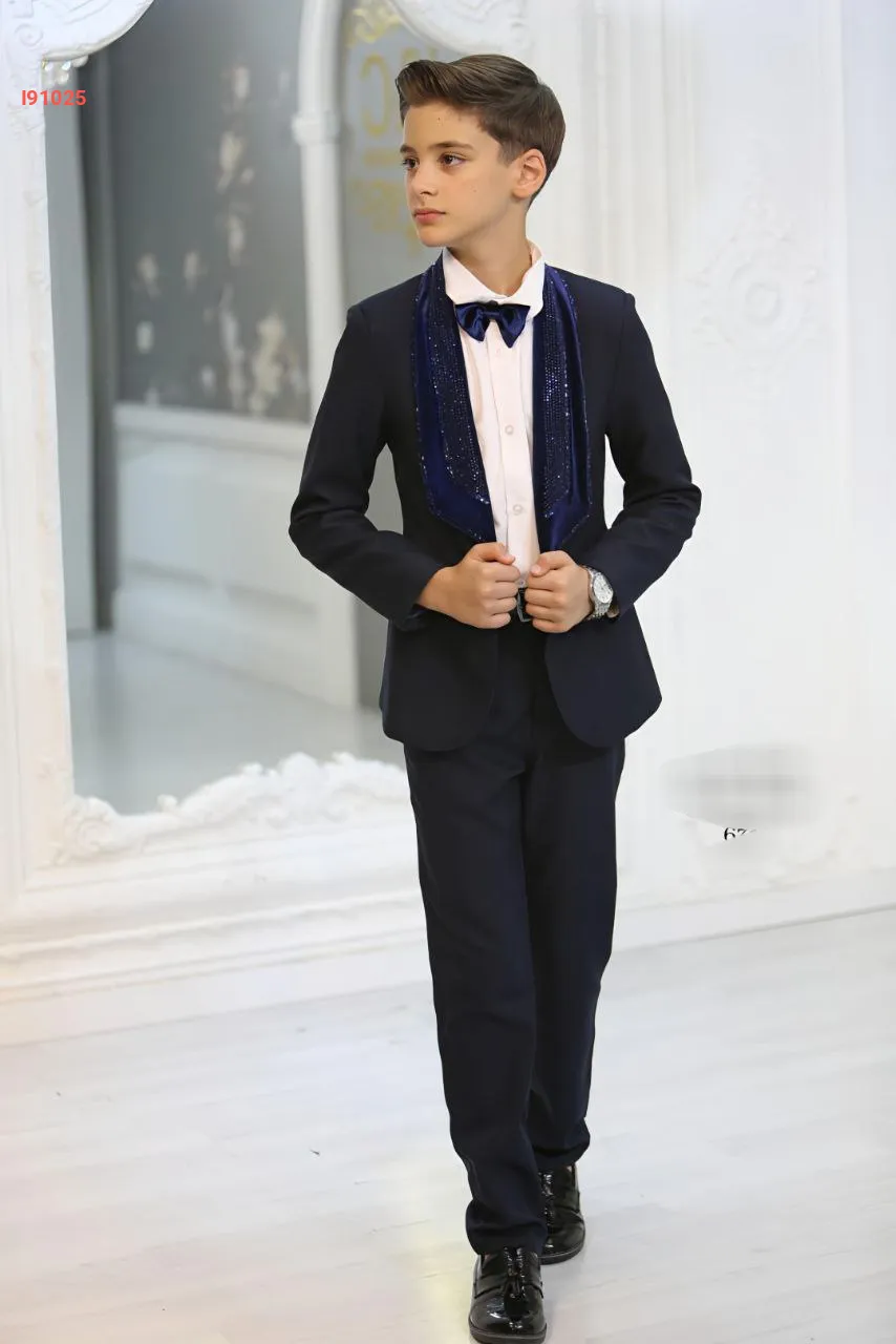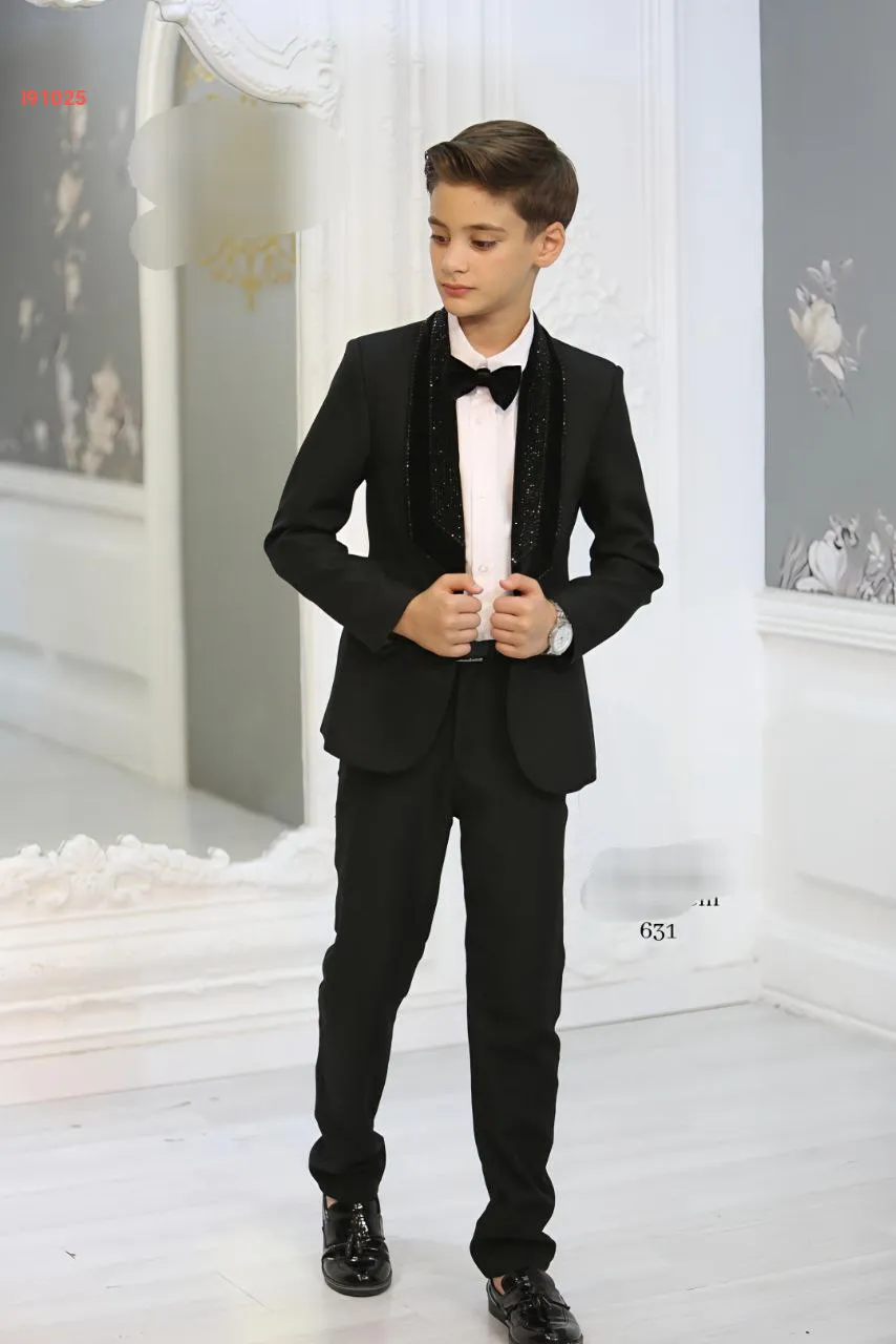 طقم صبياني مع جاكيت رسمي بياقة مرصعة