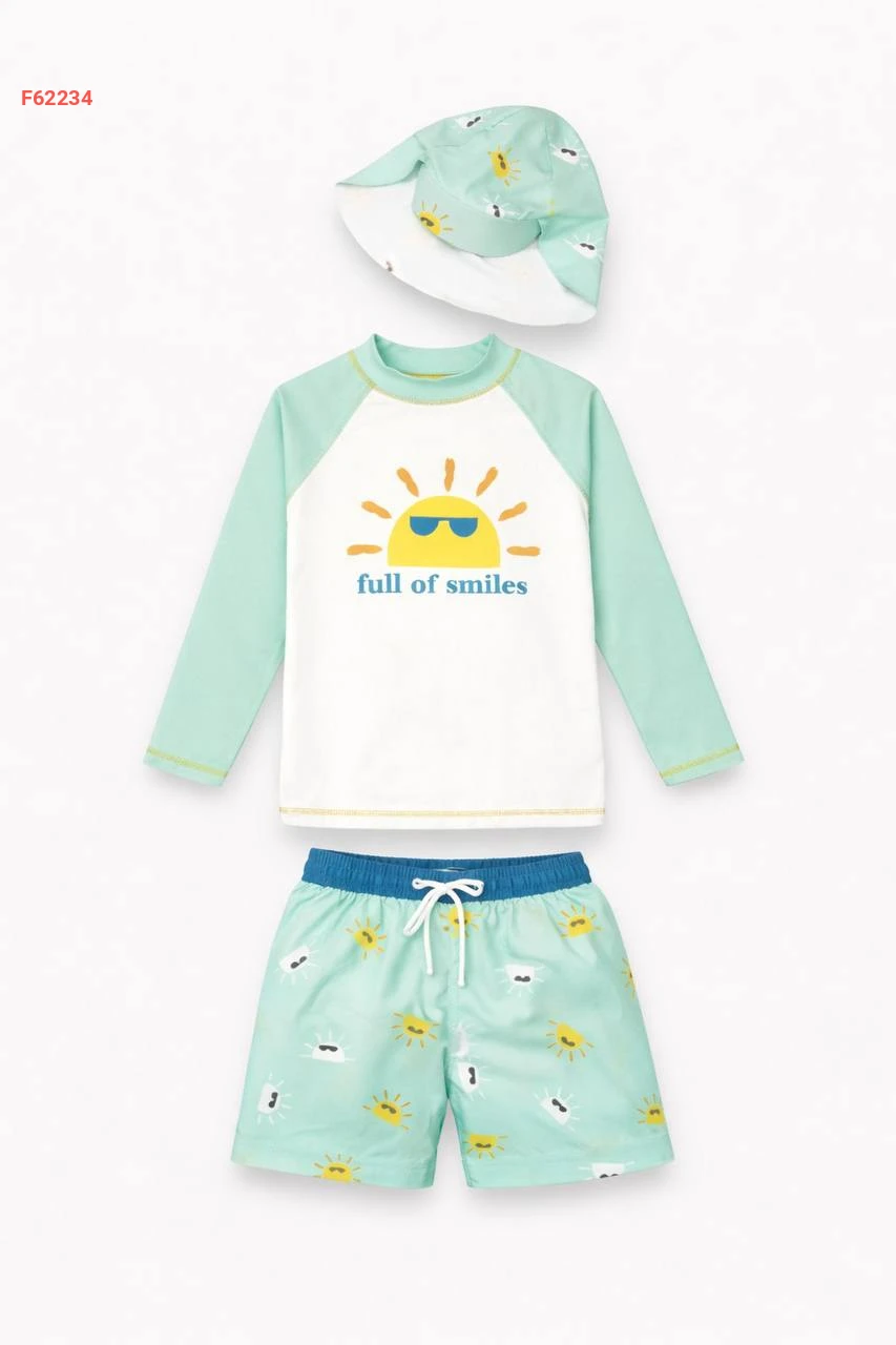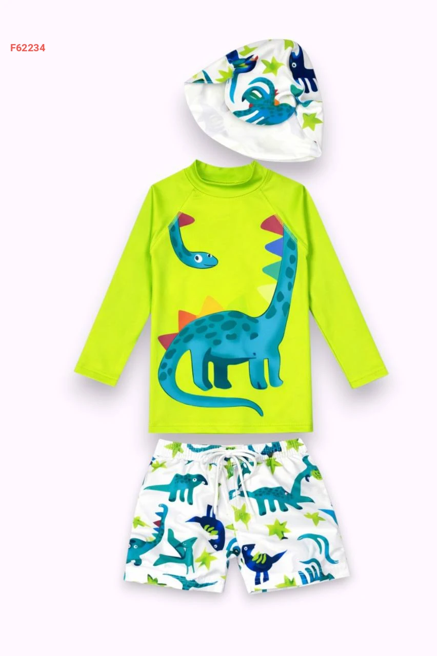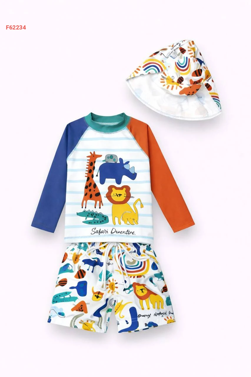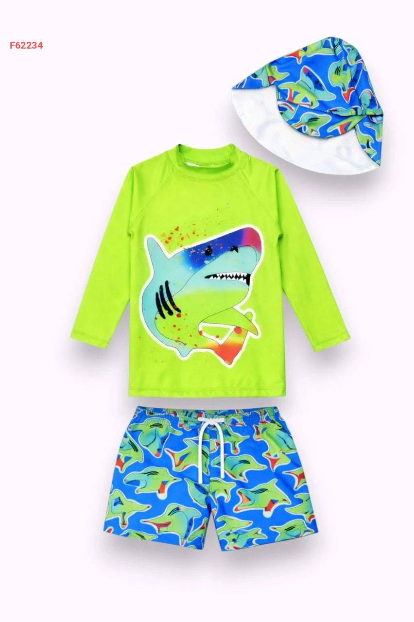 طقم سباحة للأولاد من 3 إلى 10 سنوات، الجزء السفلي من قماش الباراشوت، الجزء العلوي من قماش الغوص، قبعة واقية من الشمس، طقم سباحة من 3 قطع للأولاد
