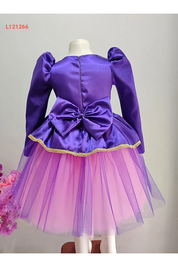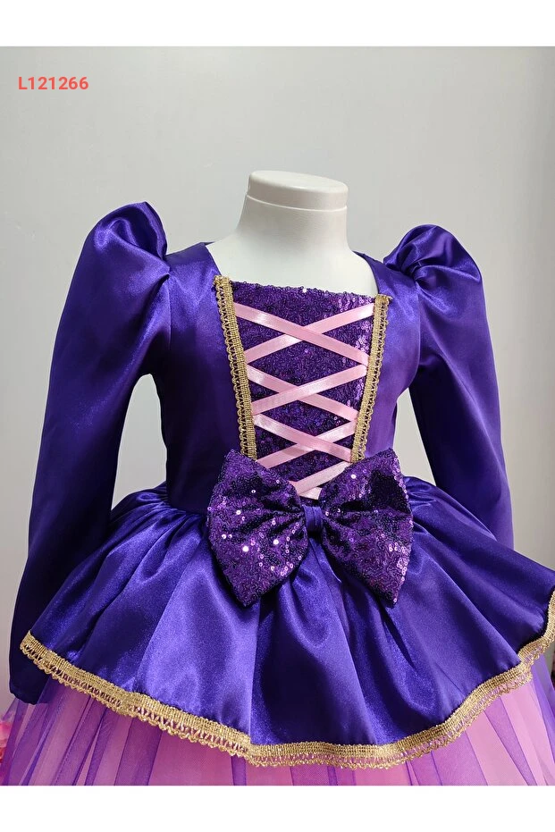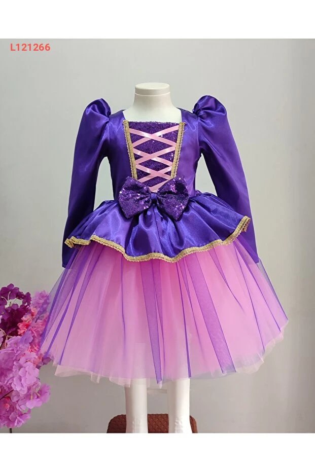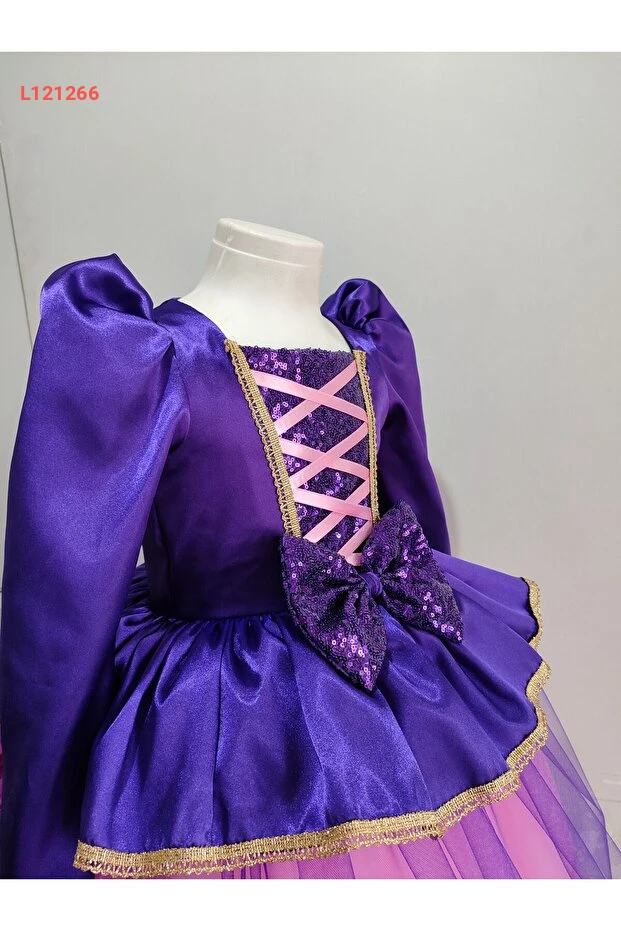 فستان عيد ميلاد واحتفال بتمثال رابونزيل للأطفال بأكمام طويلة وشعر مجدول
