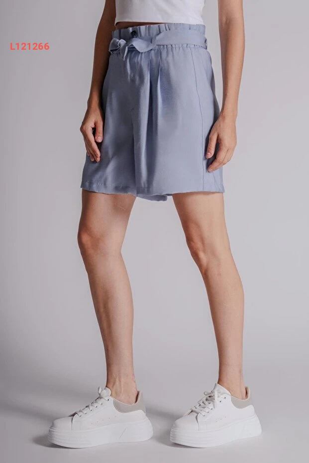 شورت جوغر نسائي أزرق مزود بجوانب مطوية وحزام قابل للتعديل