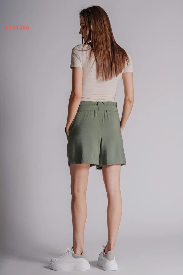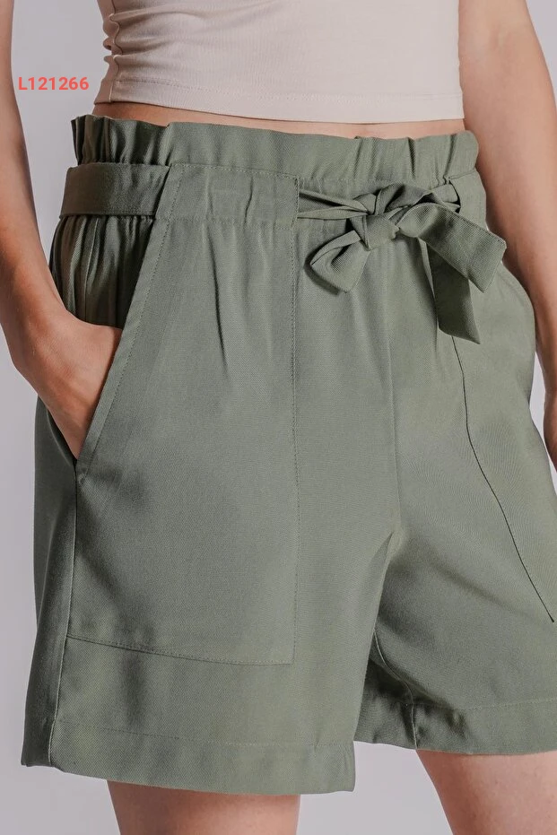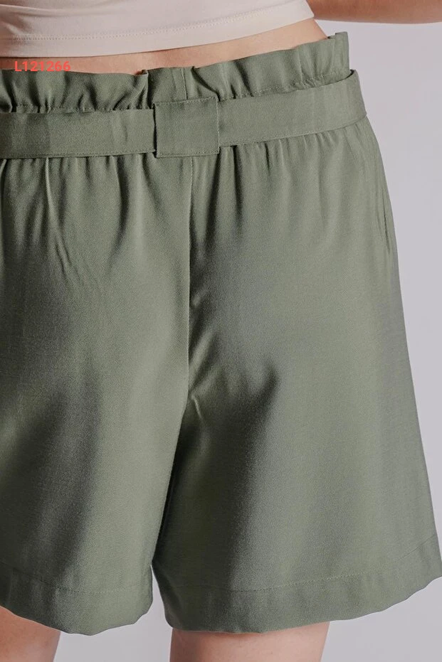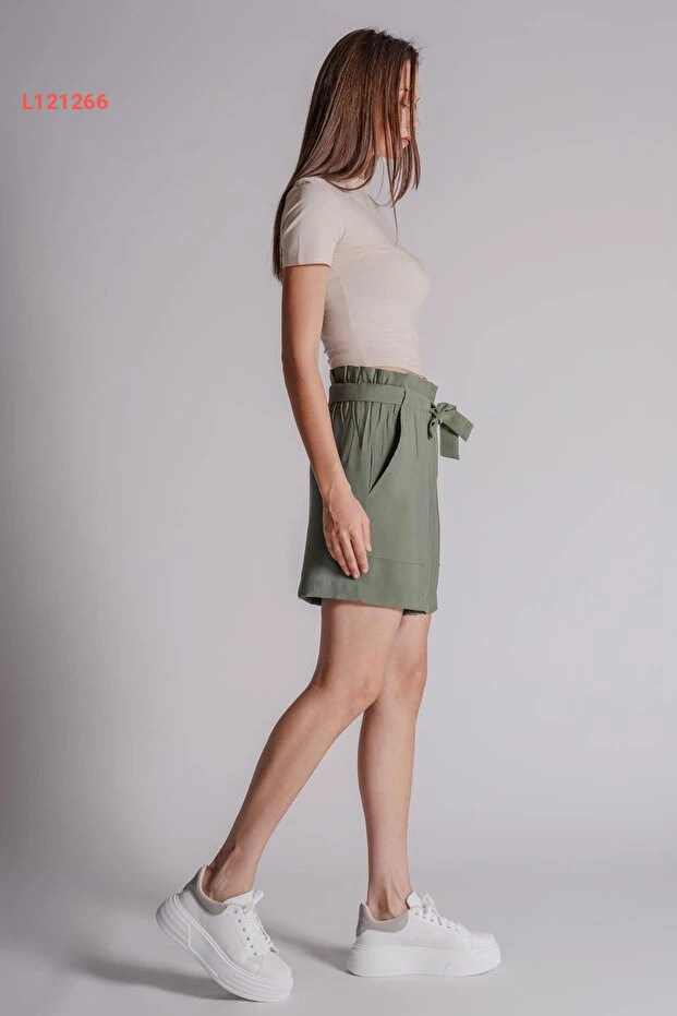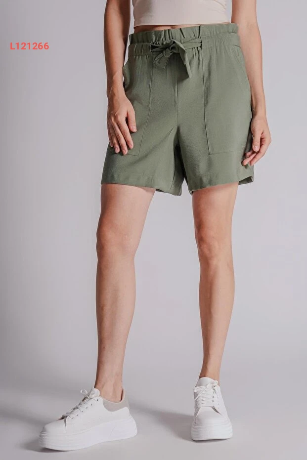 شورت جوجر نسائي بحقيبة جانبية وخصر مطاطي بلون الكاكي