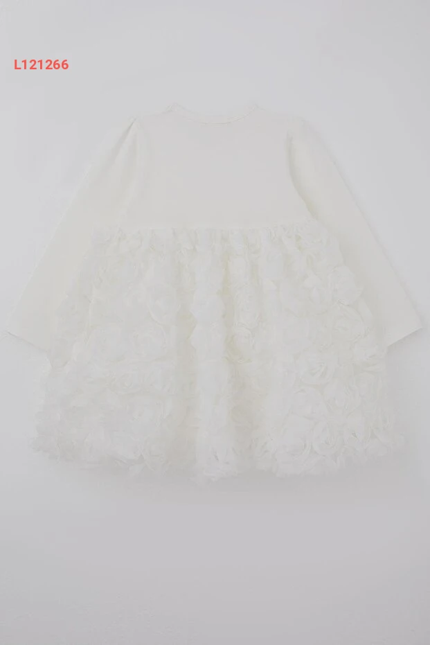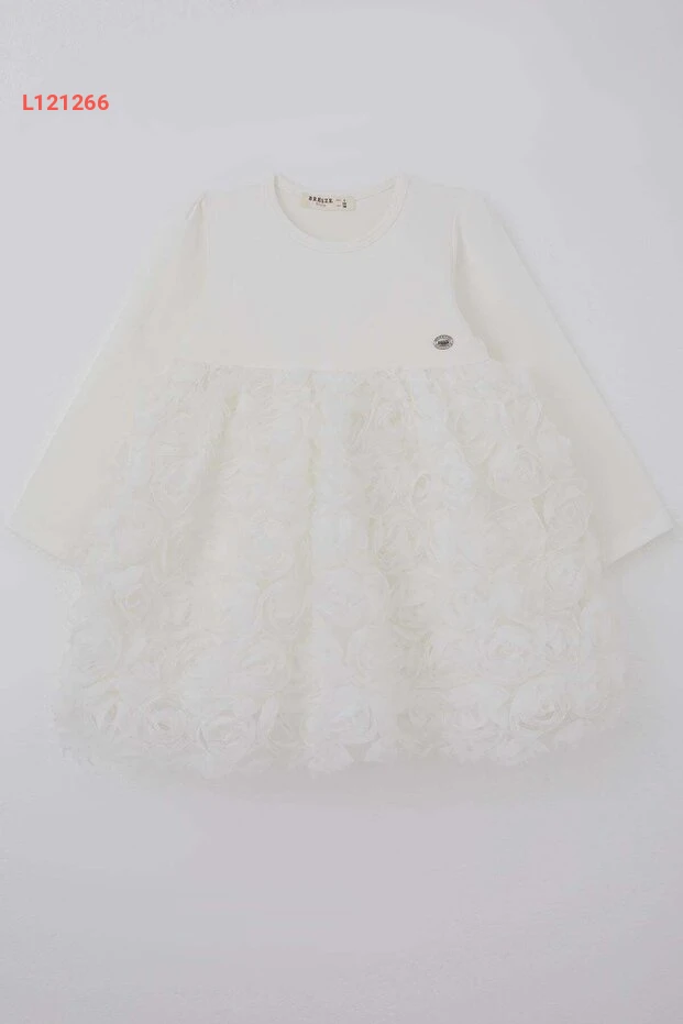 فستان طويل الأكمام للبنات من بريز بتفاصيل من قماش التول المزخرف بالأزهار، للفئة العمرية 3-7 سنوات، لون إكرو