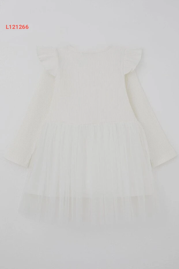 فستان بنات طويل الأكمام بتفاصيل رفيعة وأزرار، من 3 إلى 8 سنوات، بلون إكرو