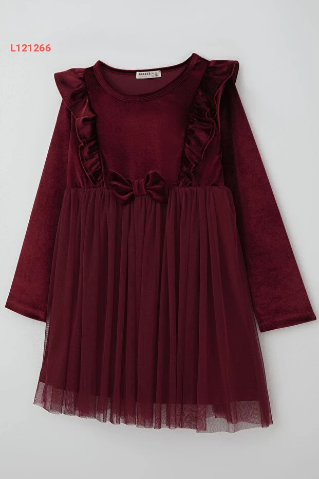 أضف لمسة من السحر إلى خزانة ملابس الفتيات مع فستان Breeze للأطفال، المصنوع من القماش المخملي الفاخر بلون البوردو الجذاب. يتميز بأكمام طويلة وزينة أنيقة من التول والرفارف، بالإضافة إلى فيونكة رائعة تضفي لمسة جمالية، مما يجعله الخيار المثالي للمناسبات الخاصة أو للحفلات. استمتع بجمال التصميم وروعة الراحة مع هذا الفستان الفريد.