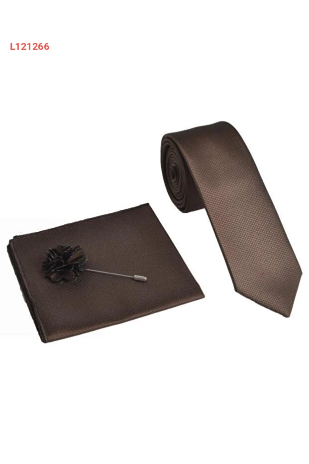 طقم ربطة عنق ومنديل رودي براينز للرجال بلون بني
