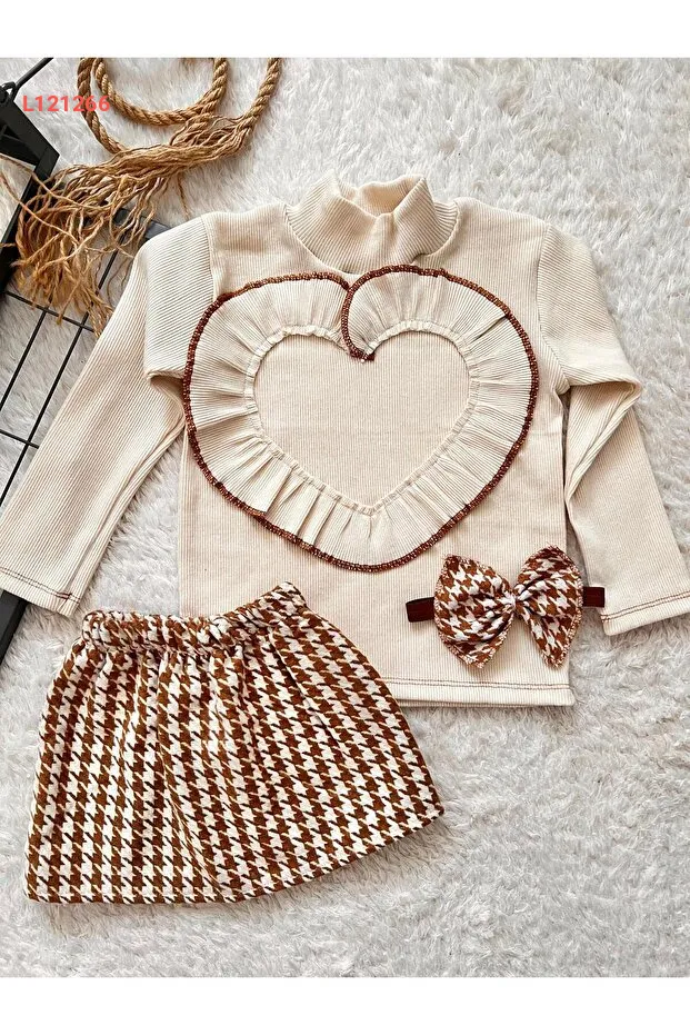 استمتع بأناقة طفلتك مع طقم BAHNUR يتكون من تنورة بلوزة بتصميم كزوياق بني أنيق، والذي يتضمن أيضًا رابطة شعر متناسقة. تم تصميم هذا الطقم من خامات عالية الجودة، مما يضمن راحة وحرية حركة لطفلتك خلال كل مغامراتها اليومية. أضف لمسة من التميز إلى خزانة ملابسها مع هذا التصميم الفريد والمحبب.