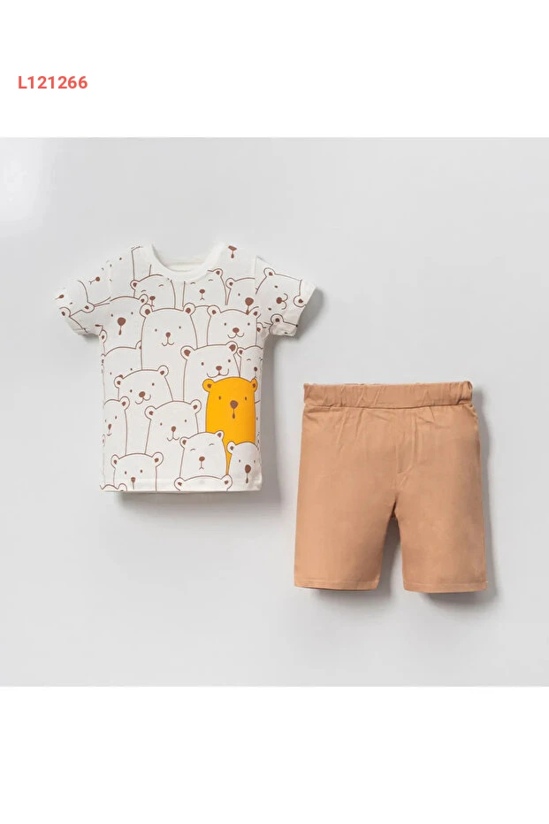 قدّم لطفلك أناقة وراحة مع مجموعة Bubito Hello Ayılar! تضمّن هذا الطقم المذهل شورتًا قطنياً مريحاً بتصميم لطيف مع رسوم دببة، مثالي لأيام الصيف المشمسة. مصنوعة من قماش ناعم، تضمن هذه المجموعة راحة مثالية وحركة حرة، لتكون اختياراً رائعاً لكل مغامرات طفلك.